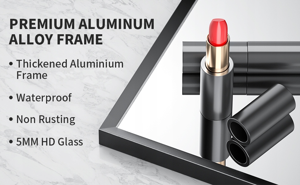 - Це настінне дзеркало виготовлене з високої якості алюмінієвого сплаву , що спеціально захищено з антикорозійним покриттям стійким до іржі та вицвітання . Делікатний процес витягування дроту в рамці ефективно захищає від подряпин та зносу, що гарантує, що продукт міцний, довговічний і характеризується чудовою стабільністю .