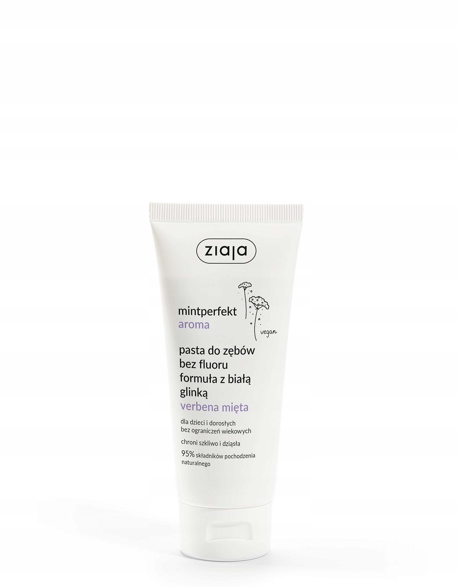 Mintperfekt aroma - сучасний засіб гігієни порожнини рота на основі мінеральних інгредієнтів: кремнезему, карбонату кальцію, білої глини та перліту. Ніжно очищає зуби без ризику стирання емалі. Має трав'яний аромат, що містить натуральні олії м'яти, лайма, вербени, евкаліпта та зеленого чаю. Без глютену, підходить для веганів.