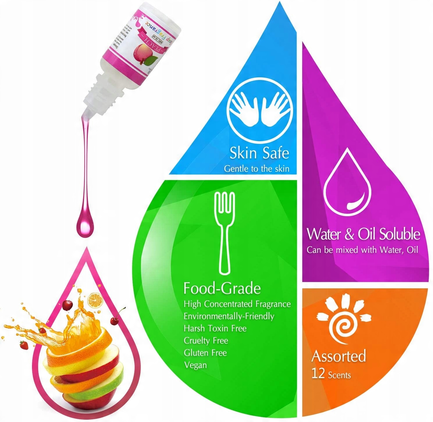 Привабливі аромати - завдяки 12 різний, високий За допомогою концентрованих ароматів ви можете персоналізувати своє мило без запаху та бомбочки для ванни.