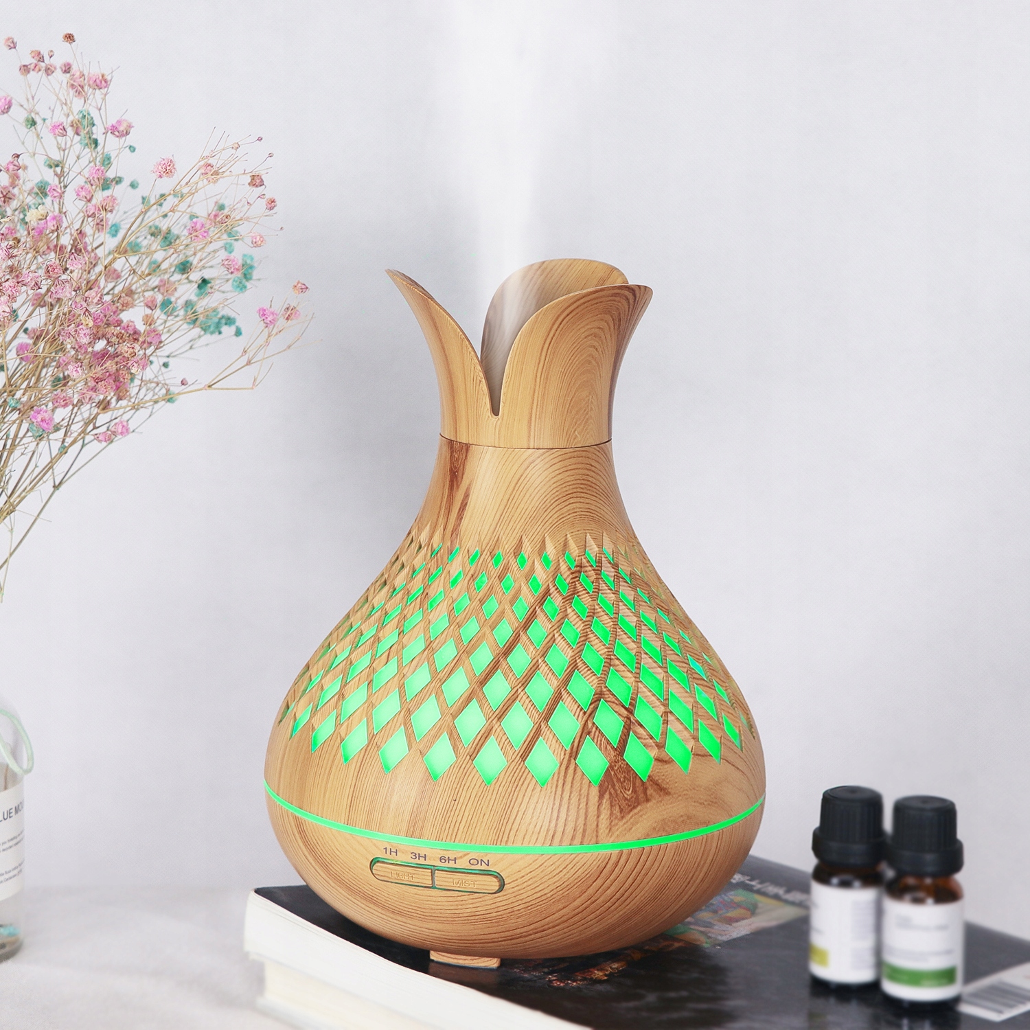 Ви можете залишити цей розумний ароматерапевтичний дифузор увімкненим на ніч, не турбуючись про перегрів, оскільки функція автоматичного відключення без води захищає вас і вашу родину. Аромамасляний дифузор відрізняється ультрасучасним дизайном вази з деревним зерном, що нагадує декоративний елемент, який природно вписується в більшість інтер'єрів.