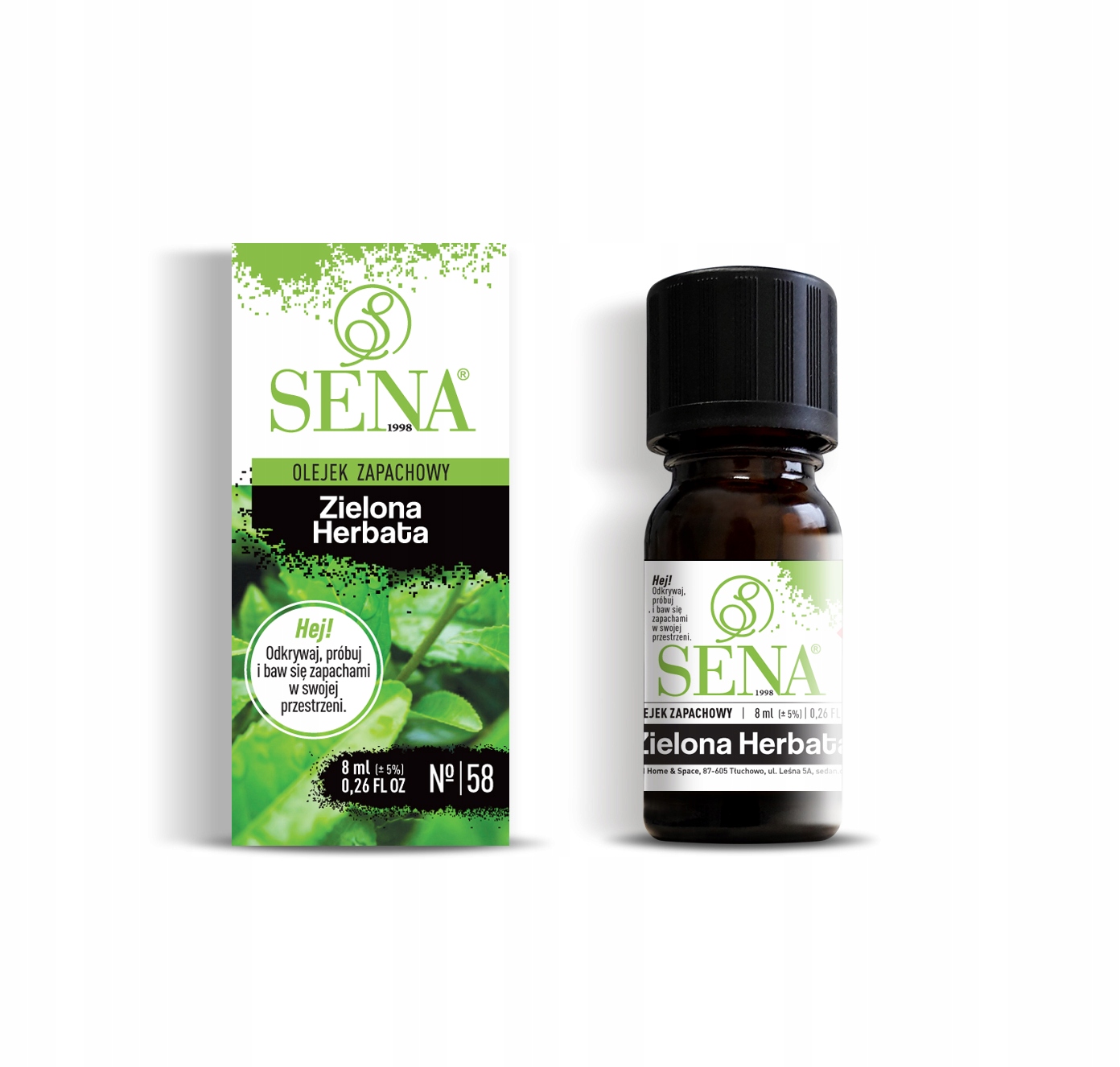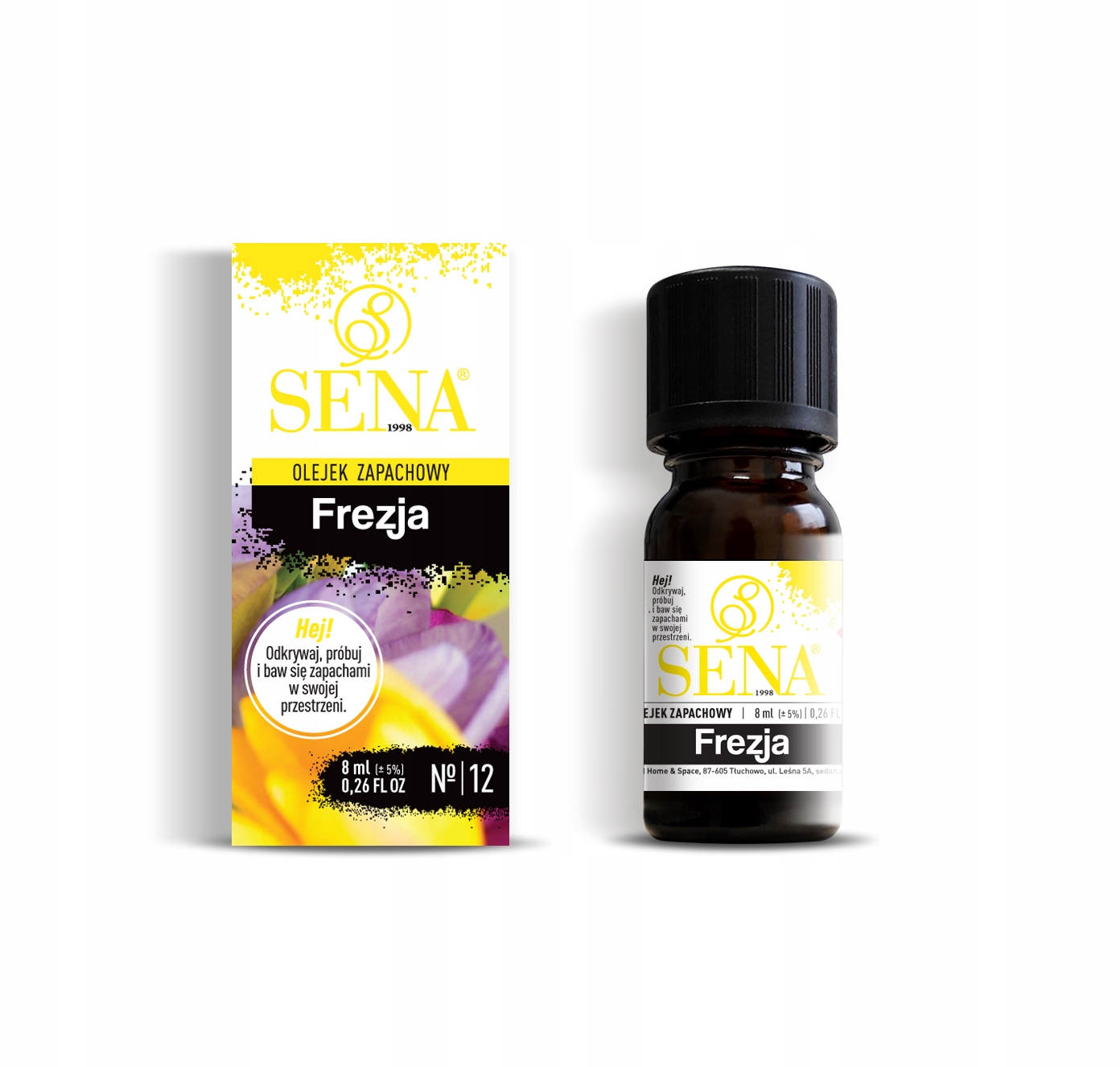 Кожна ароматична олія SENA® закрита в скляній темній фармацевтичній пляшці з крапельницею ємністю 8 мл.