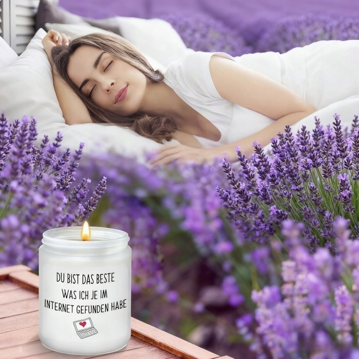 Die Duftkerze im glas ist aus natürlichem Sojawachs und natürlichem ätherischem Öl hergestellt, es ist sicher für den menschlichen Körper und die Umwelt. Der Lavendelduft schafft eine entspannende und romantische Atmosphäre und hilft Ihnen, Ihren Körper zu entspannen, Ihre Stimmung zu beruhigen und den Schlaf zu fördern.