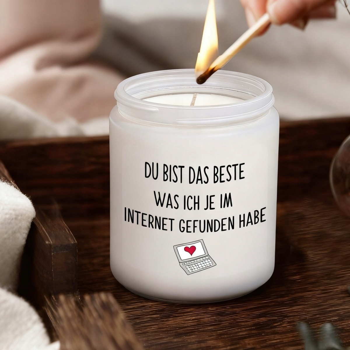 Свічка з ароматом лаванди з написом «ТИ НАЙКРАЩА РІЧ, ЩО Я КОЛИ-небудь ЗНАЙШЛА В ІНТЕРНЕТІ» — ідеальний подарунок, щоб показати любов і вдячність близькій людині. Це ідеальна ідея подарунка для дівчини, дружини, хлопця, чоловіка, нареченої, нареченого тощо.