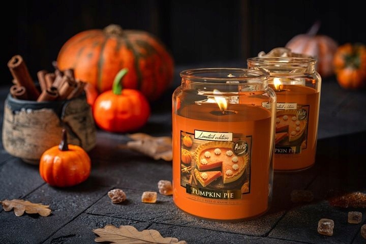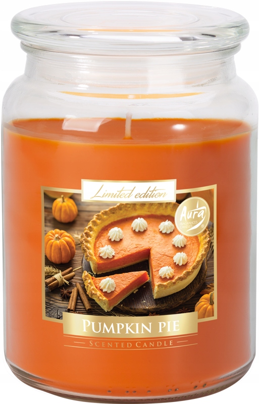 Велика ароматична свічка в елегантному, класичному, прозорому склі з ароматом гарбузового пирога. Щільне закривання дозволяє зберегти інтенсивний аромат свічки та захищає від пилу та забруднень.