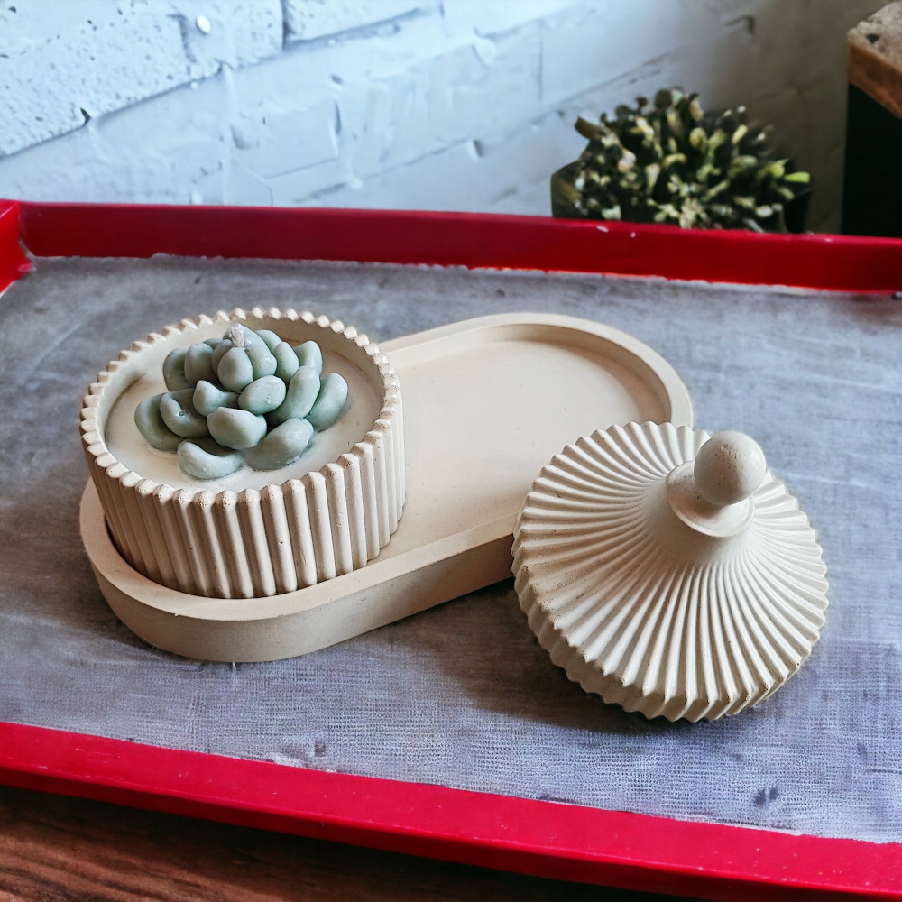 ✅ Ароматична свічка з сукулентним мотивом у смугастому блюді з овальною основою стане ідеальним доповненням до вашого інтер'єру, поєднуючи в собі елегантність і тонкий аромат. Ця чарівна свічка створена для любителів рослин, які хочуть привнести в свій дім атмосферу природи та трохи відпочинку.