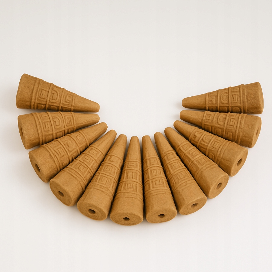 Конічні ароматичні палички з зворотним потоком — це унікальні ароматизовані конуси з декоративним візерунком, розроблені виключно для камінів із зворотним потоком і курильниць.