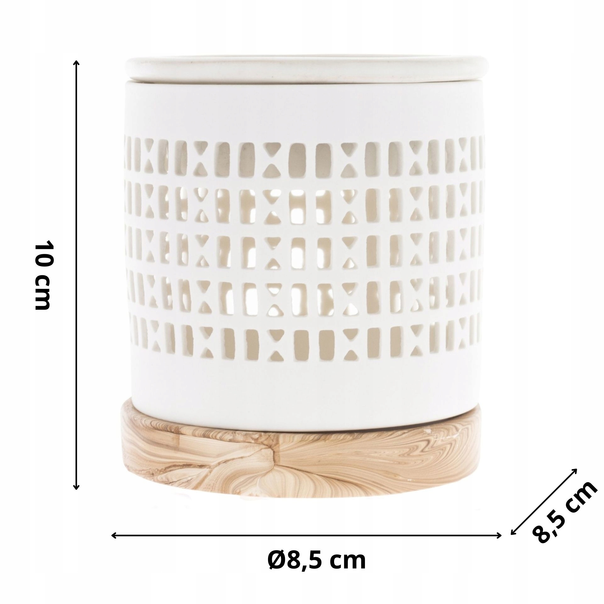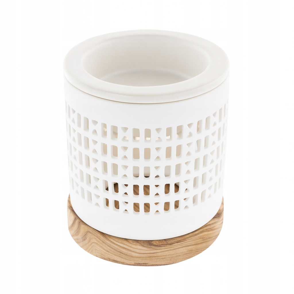 Білий ароматизатор з високоякісної кераміки. Ажурні стінки воскового каміна вражають своєю класичною формою і забезпечують вільний потік повітря. Модний воскогрій ідеально поширює аромат ваших восків і масел. Коркова основа ароматичного каміна захищає меблі від теплових пошкоджень.
