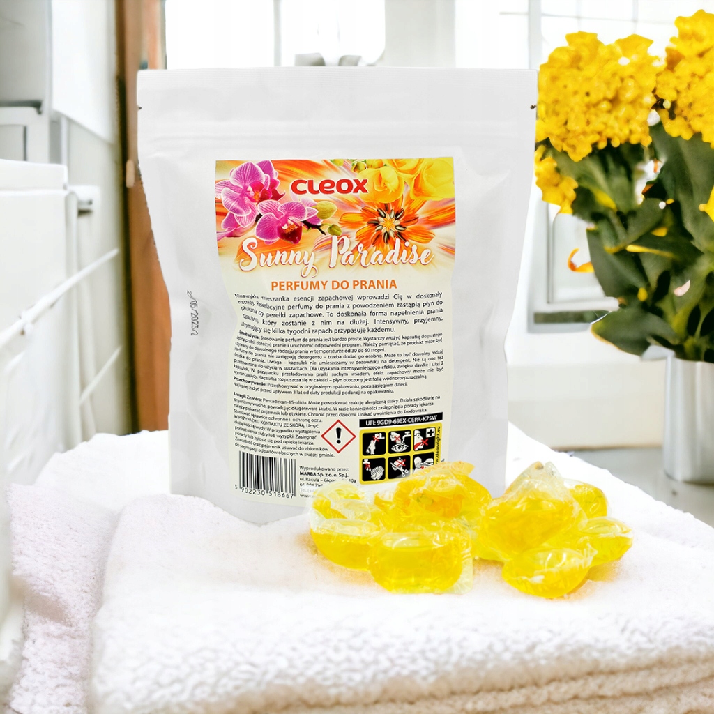 CLEOX - Парфуми для прання Sunny Paradise - ідеальне рішення для людей, які хочуть, щоб їхня білизна завжди пахла свіжістю та оригінальністю.