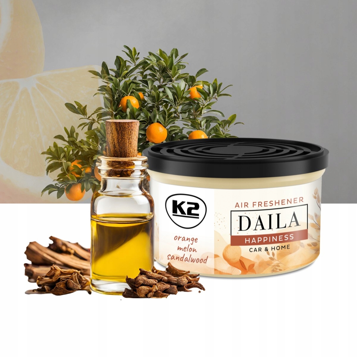 Ароматизатор K2 DAILA HAPPINESS в балончику з натуральною добавкою для автомобіля