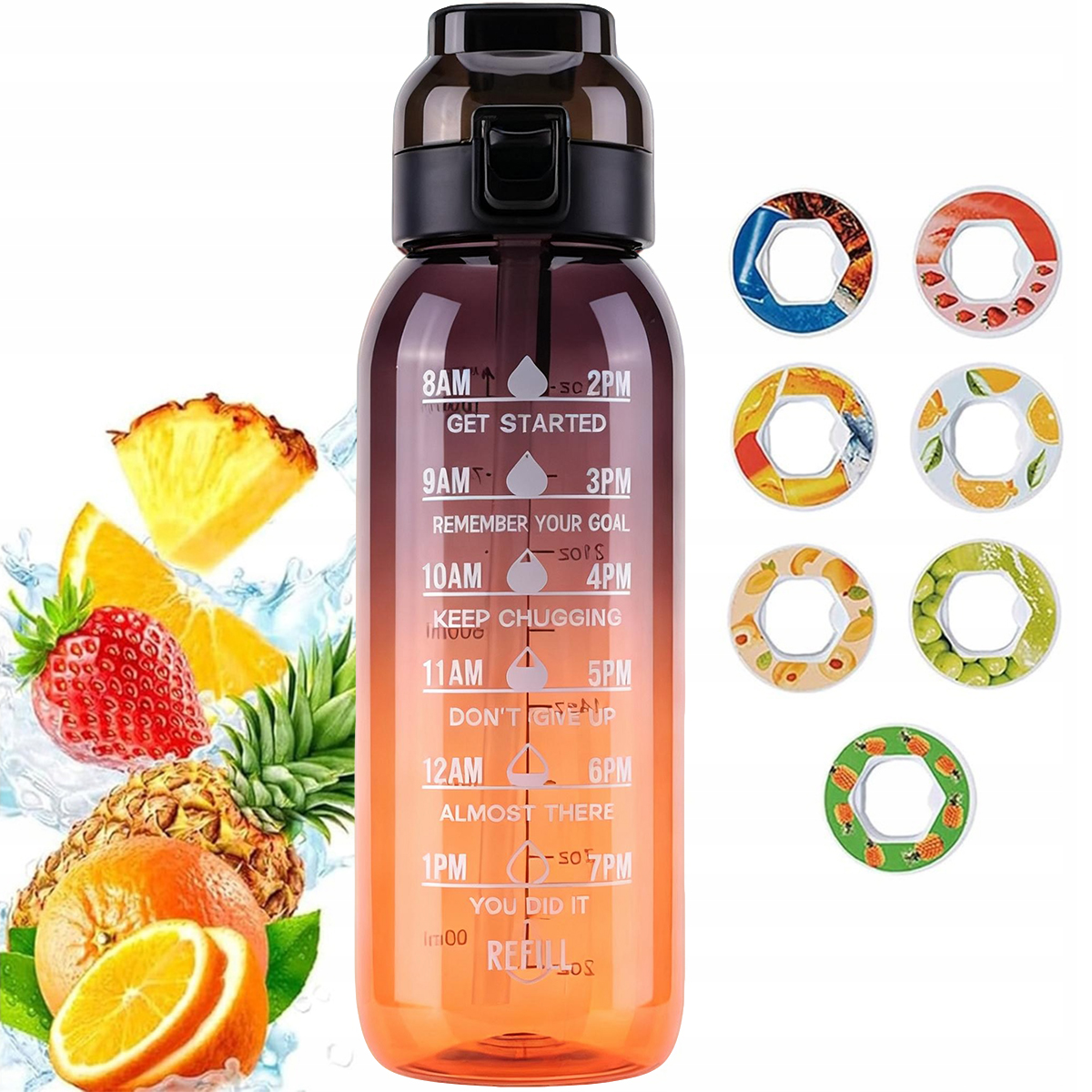✅ Новий досвід вживання води: багато людей люблять колу та фруктові напої, але ці напої часто містять багато калорій і цукру, що становить ризик для здоров’я. Наше ароматичне кільце для пляшки з водою надає вашій пляшці з водою фруктовий аромат, створюючи відчуття ароматного напою, одночасно забезпечуючи чистою, здоровою водою. Це зменшує задоволення від споживання калорій і цукру, мінімізує ризик ожиріння та покращує задоволення від пиття.