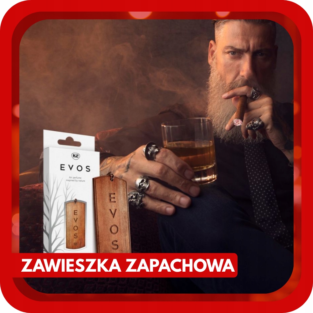K2 EVOS - це надзвичайний автомобільний освіжувач повітря, натхненний природою та легендами. Він має форму елегантної дерев’яної підвіски з унікальною формою легендарної собачої жетони, яка додає елегантності та характеру салону автомобіля.