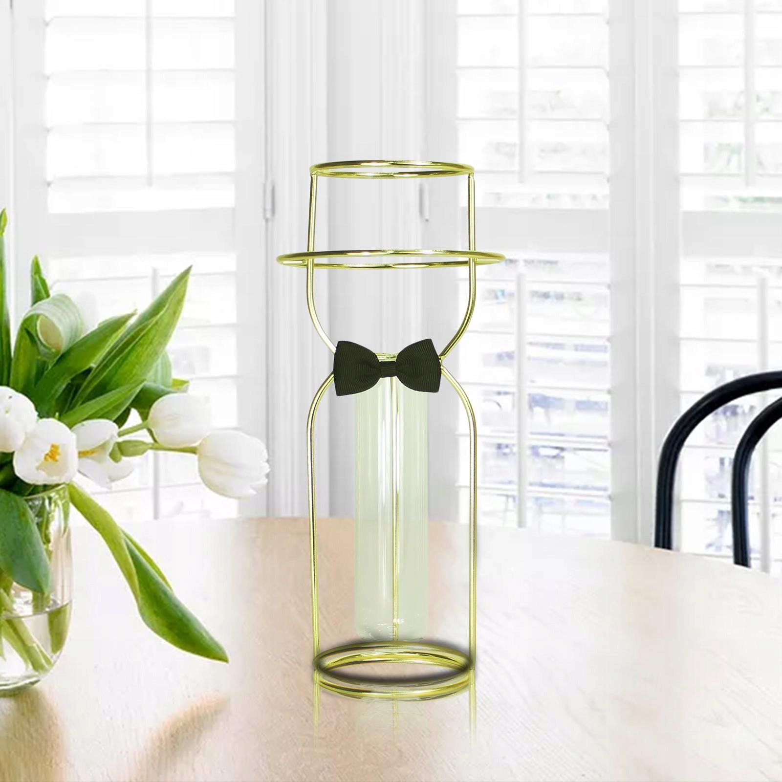 Мінімалістичний: металева підставка, з'єднана з прозорими скляними трубами. Відображає свіжі квіти, маленькі рослини для дизайну будинку у вітальні, спальні, туалеті, їдальні, кухні чи офісу.