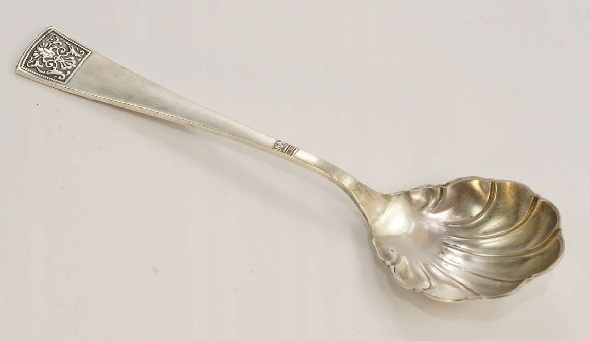 Оригінальна, надзвичайно гарна, стара, підписана польська ложка для цукру, совок, Роман Лінковський Варшава; посріблений метал, гарно декорований по всьому розміру: довжина 15 см, дуже хороший стан - без пошкоджень, натуральна ніжна патина, незначні сліди використання. Рекомендую, оригінальна, рідкісна річ за доступною ціною. Надзвичайно цікавий рідкісний оригінальний предмет. Стан добре видно на фото в описі аукціону.