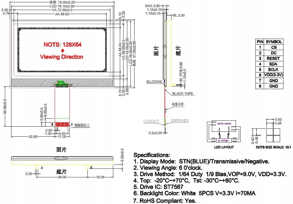 LCD-CG-C128064a-diw w/kk- E6 = AGG128064A04-DIW-R
