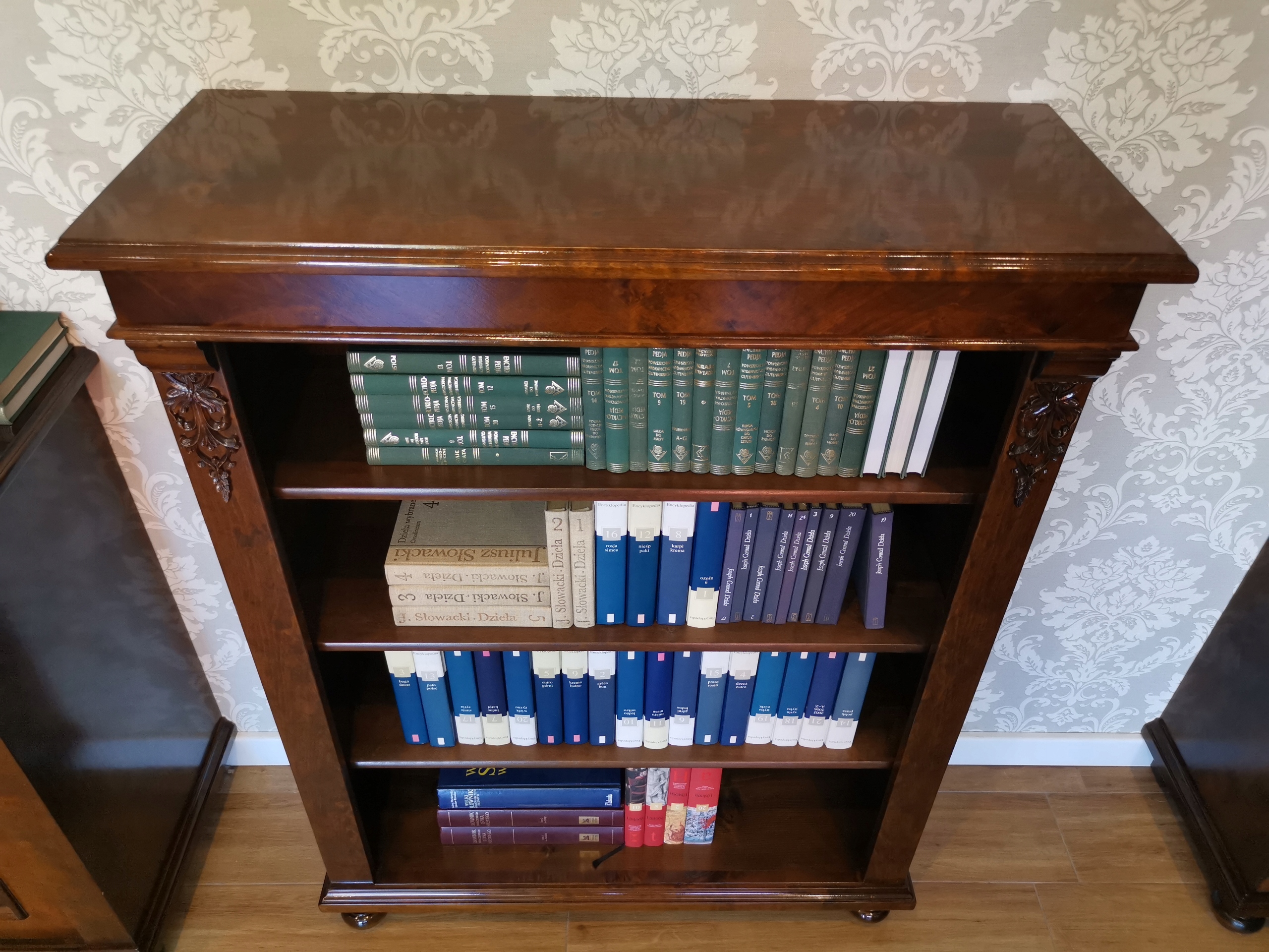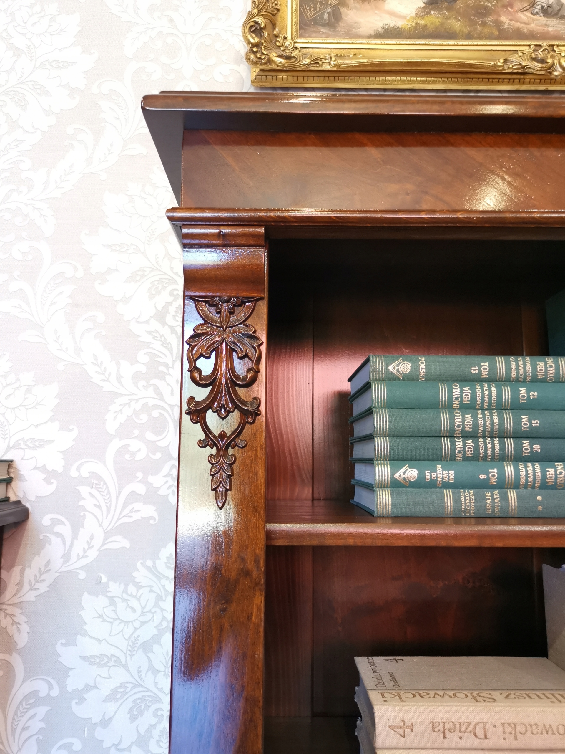 Делікатні, рослинні прикраси - це тонкий кивок на природу - вони прекрасно вписуються в атмосферу сецесії, підкреслюючи оригінальний характер меблів. Це поєднання функціональності з художнім виразом.