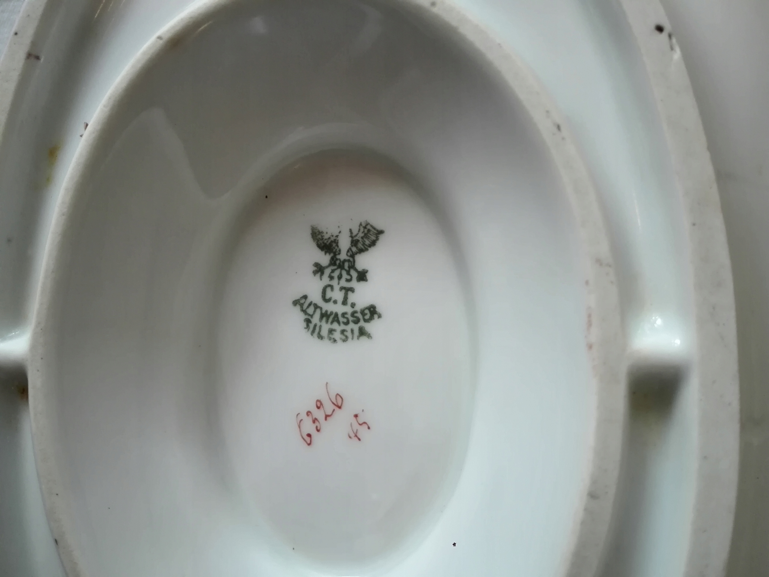 4 Akcyjna у Wałbrzych-Star Zdrój (Waldenburg-Alt Wasser). було засновано в 1900-1914 роках. 4 Золота прикраса застосовується на смужках. Крім того, контури країв і ручної ручки - підпис художника поруч із підписом компанії. Мінімальна позолота. Висотою 12 см. Пластина - 23 см х 14,1 см. без пошкоджень.