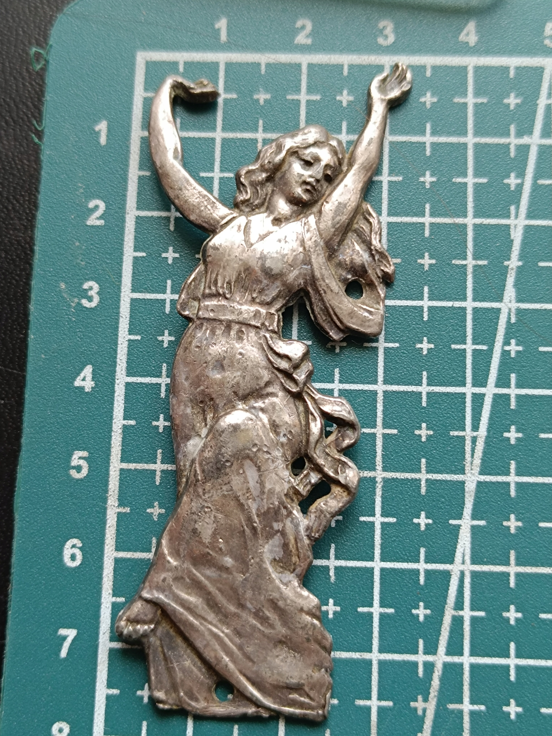 Ми запрошуємо срібну леді з розмірами завдовжки 7,5 см завширшки 3 см. На наш погляд, декоративний елемент для пташенят, книг, альбомів. Виготовлений із срібла, перевіреного хромованою рідиною. Має 2 місця після кріплення. Видно на зворотному. Вага 15,61 грам. Ласкаво просимо