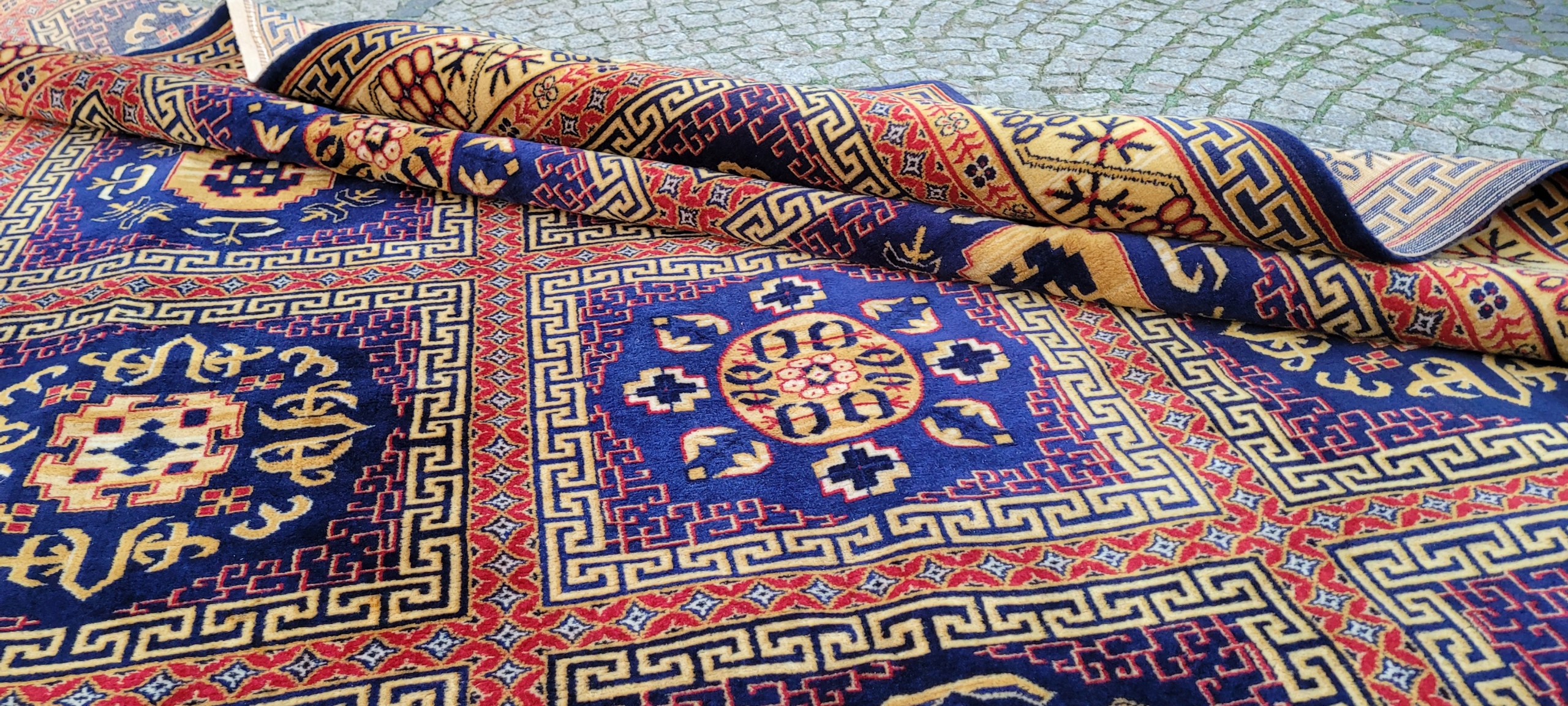 ARTDECO UNIQUE ЗОЛОТО-СІНИЙ СЯЙ ВІТАЛЬНИЙ ПЕРСЬКИЙ КИЛИМ ВЕРСТЬ 250/350