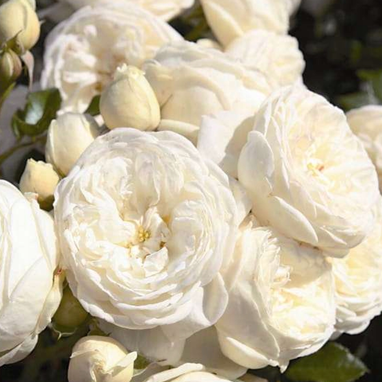 Роза Артеміда зачаровує свій романтичний вигляд з кремовими білими квітами з ноти Селестін.