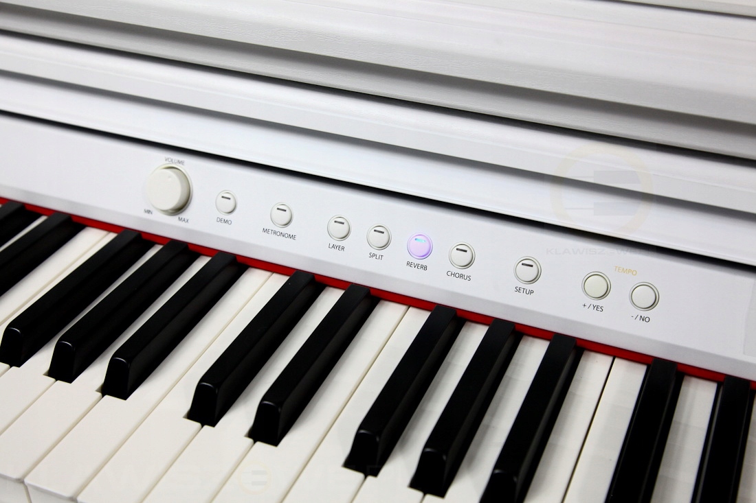 Музикант має у своєму розпорядженні кілька основних звукових кольорів та ефектів. Колірна палітра: рояль, електричне піаніно, клавесин, гітара, нейлонова гітара, орган, струнні, бас. Що стосується ефектів, то в нашому розпорядженні є реверберація та хорус. Клавіатуру також ділимо на зони, а ще під рукою є метроном. Вся інформація виводиться на тризначний червоний дисплей. Натискаючи функціональні клавіші піаніно та електропіаніно одночасно, ми можемо регулювати динаміку/чутливість самої клавіатури.