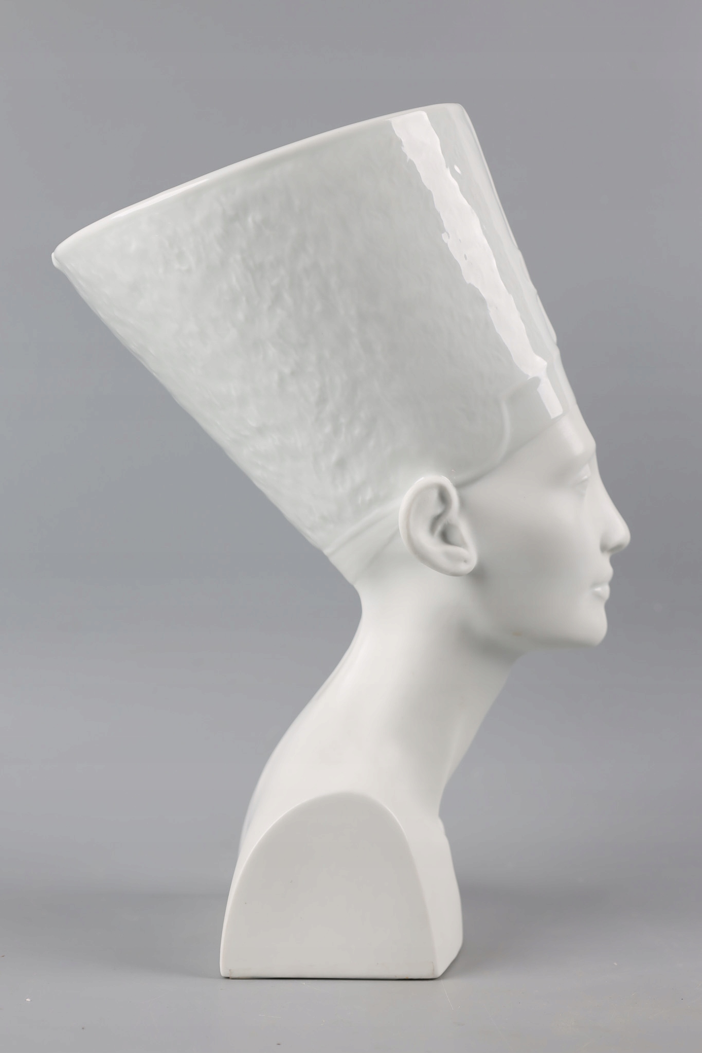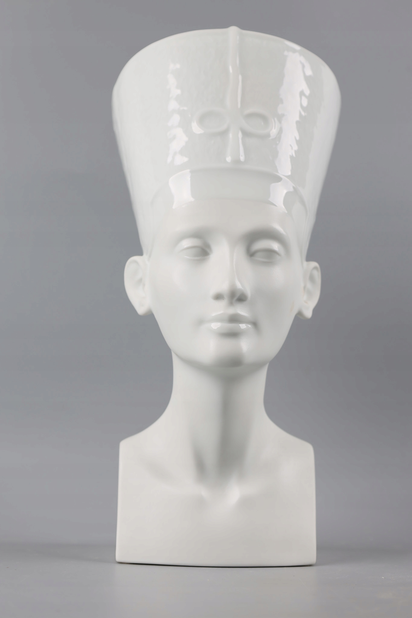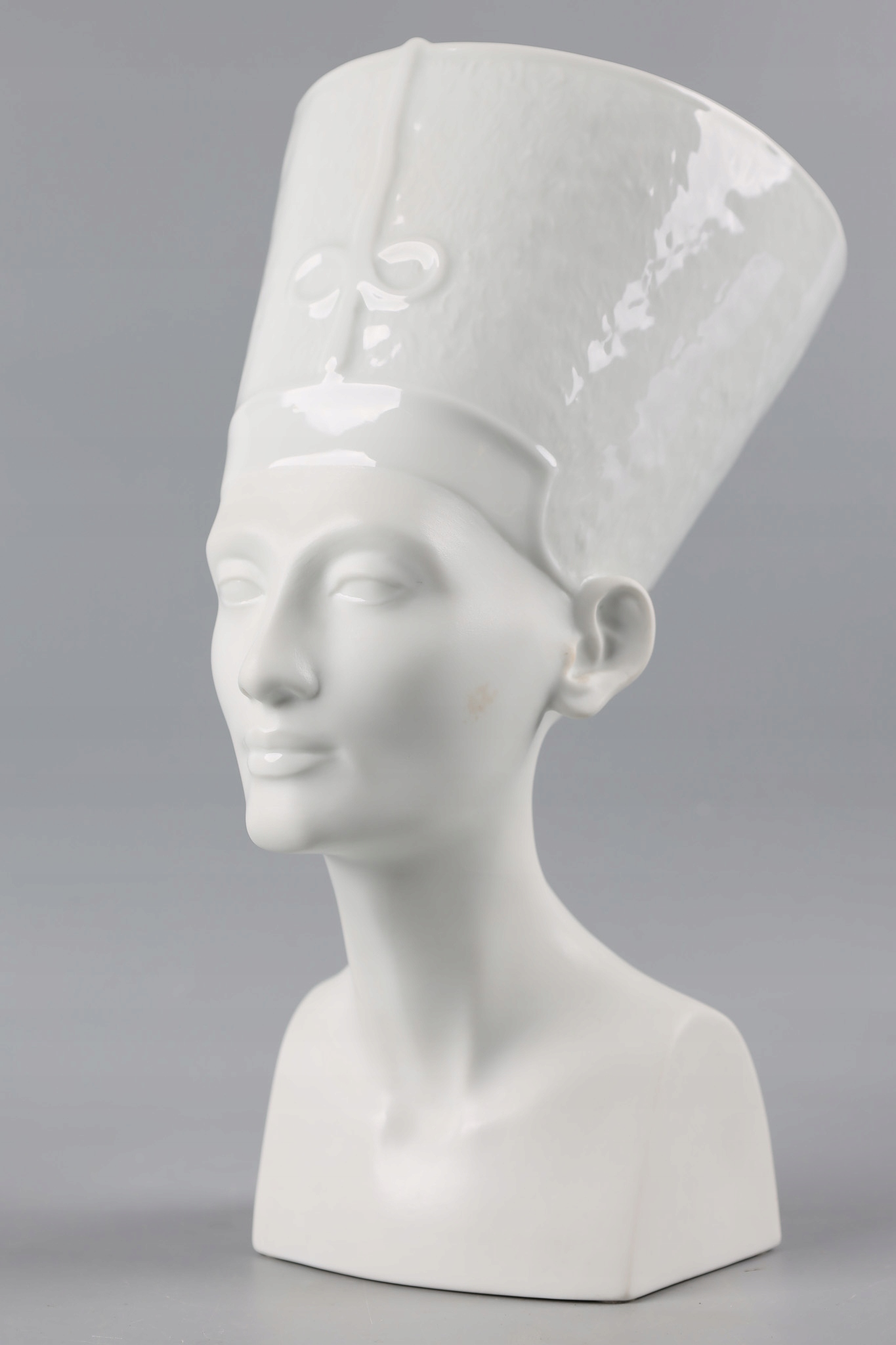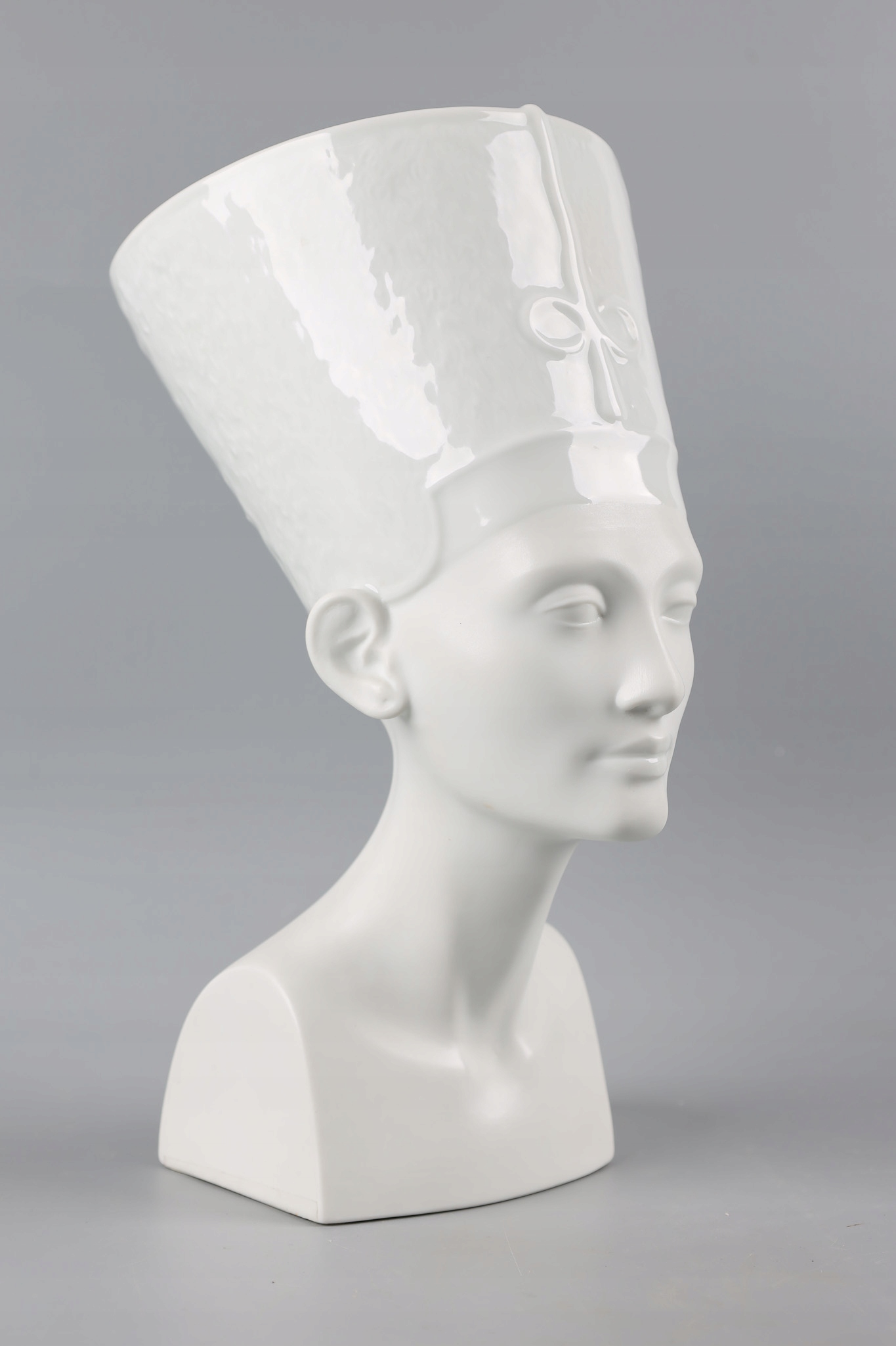 NEFRETITI Велика та вражаюча порцелянова фігура розроблена та виготовлена відомою та шанованою фабрикою Rosenthal. Фабрика славиться виробництвом розкішного порцелянового посуду і красивих статуеток.Фігура виконана частково з глазурованої порцеляни (верхня частина - головний убір) і частково з матової порцеляни (нижня частина - обличчя, шия і тіло).