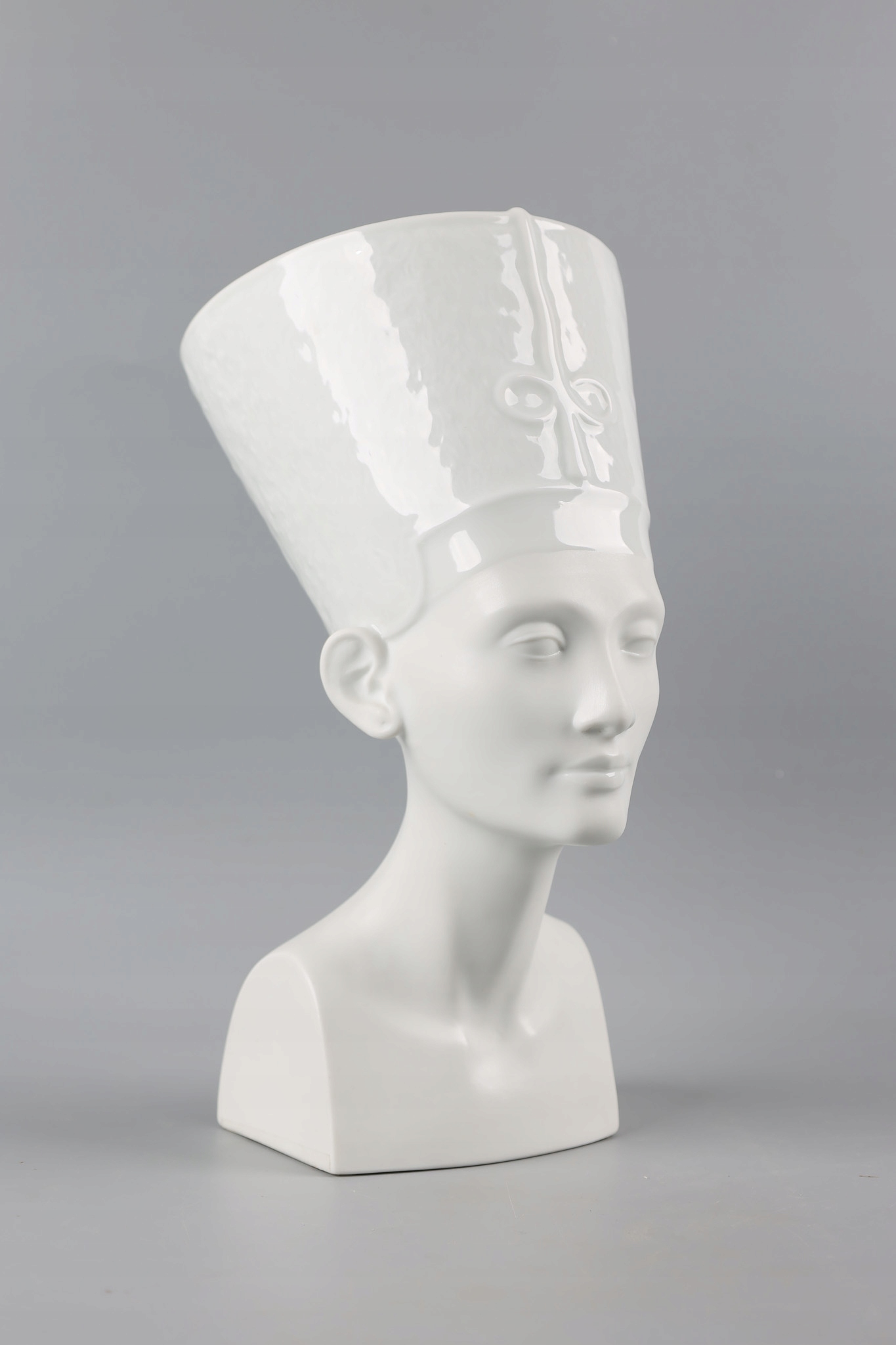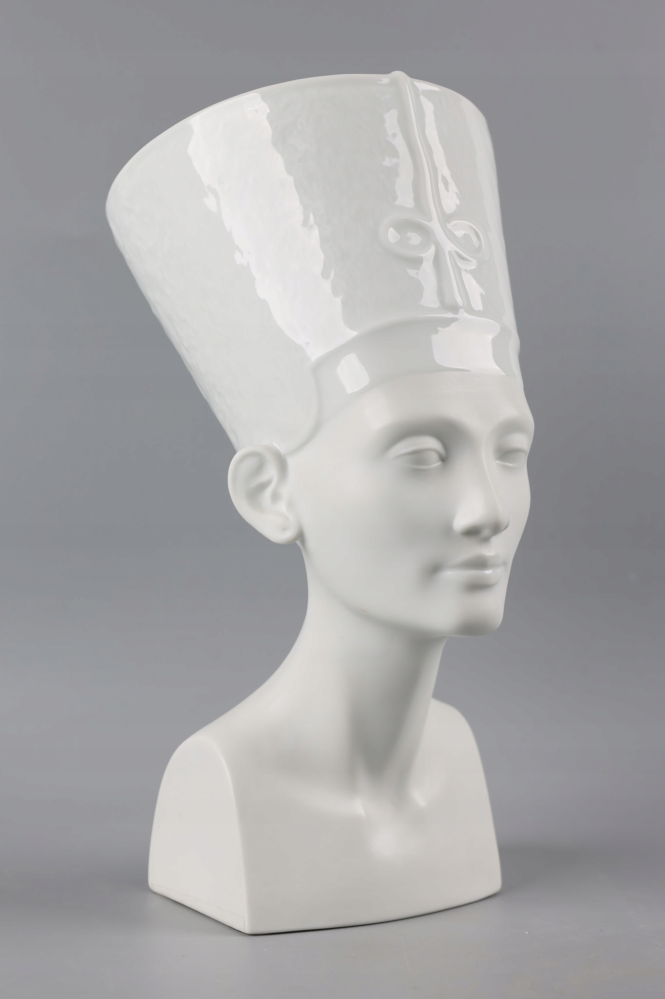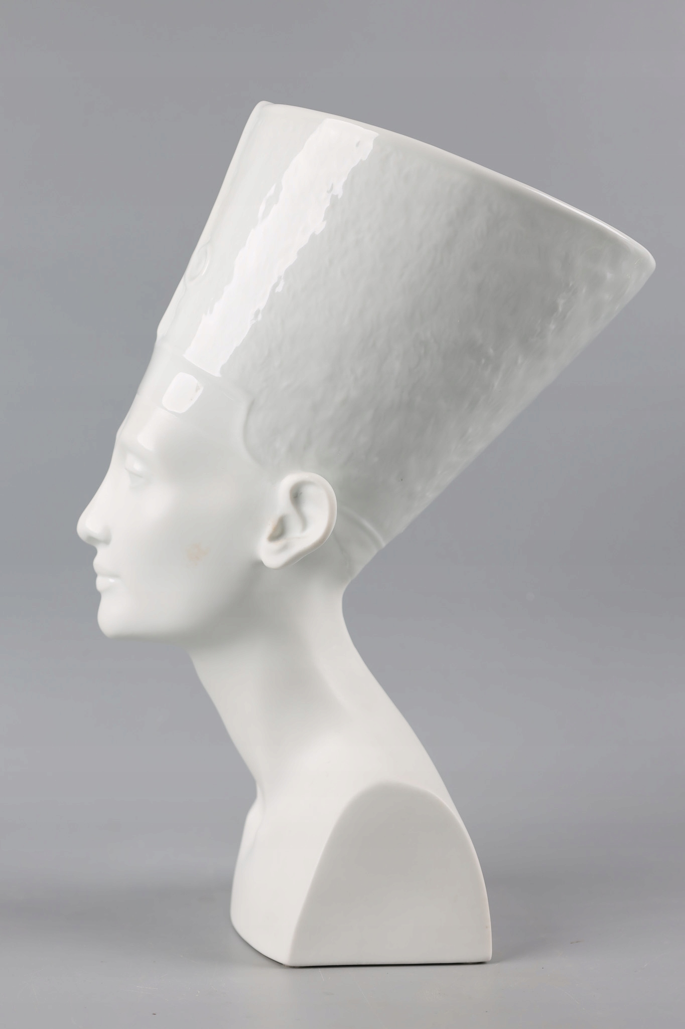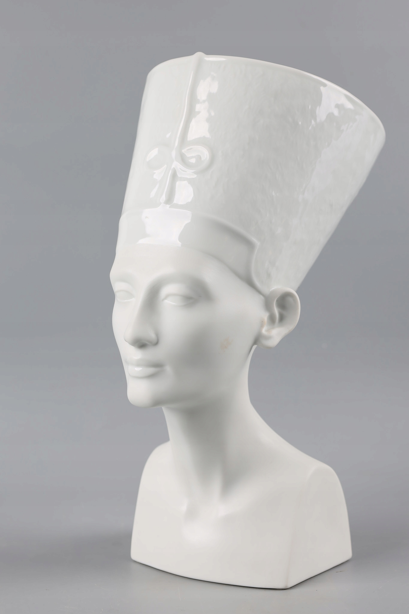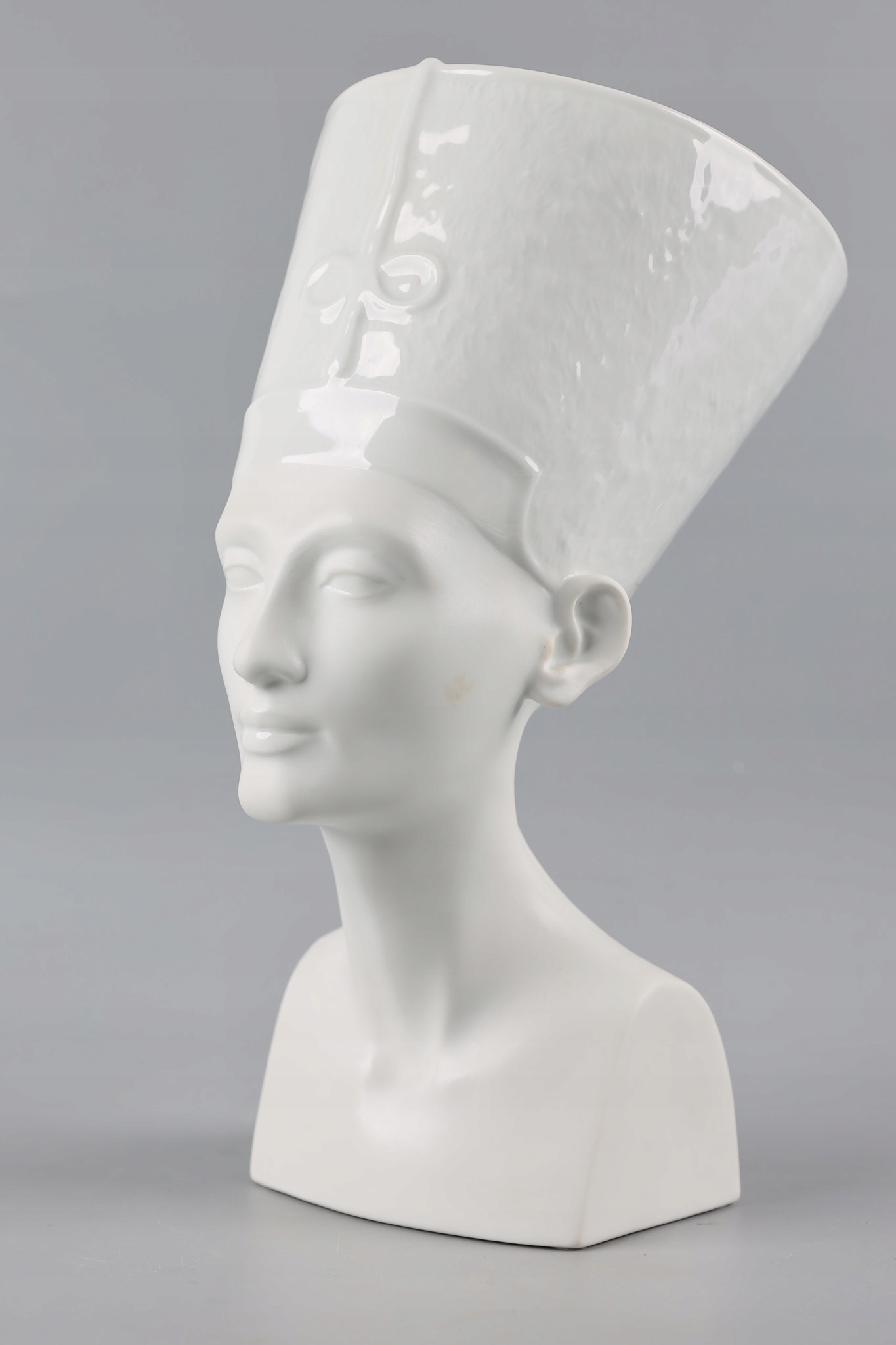 NEFRETITI Велика та вражаюча порцелянова фігура розроблена та виготовлена відомою та шанованою фабрикою Rosenthal. Фабрика славиться виробництвом розкішного порцелянового посуду і красивих статуеток.Фігура виконана частково з глазурованої порцеляни (верхня частина - головний убір) і частково з матової порцеляни (нижня частина - обличчя, шия і тіло).