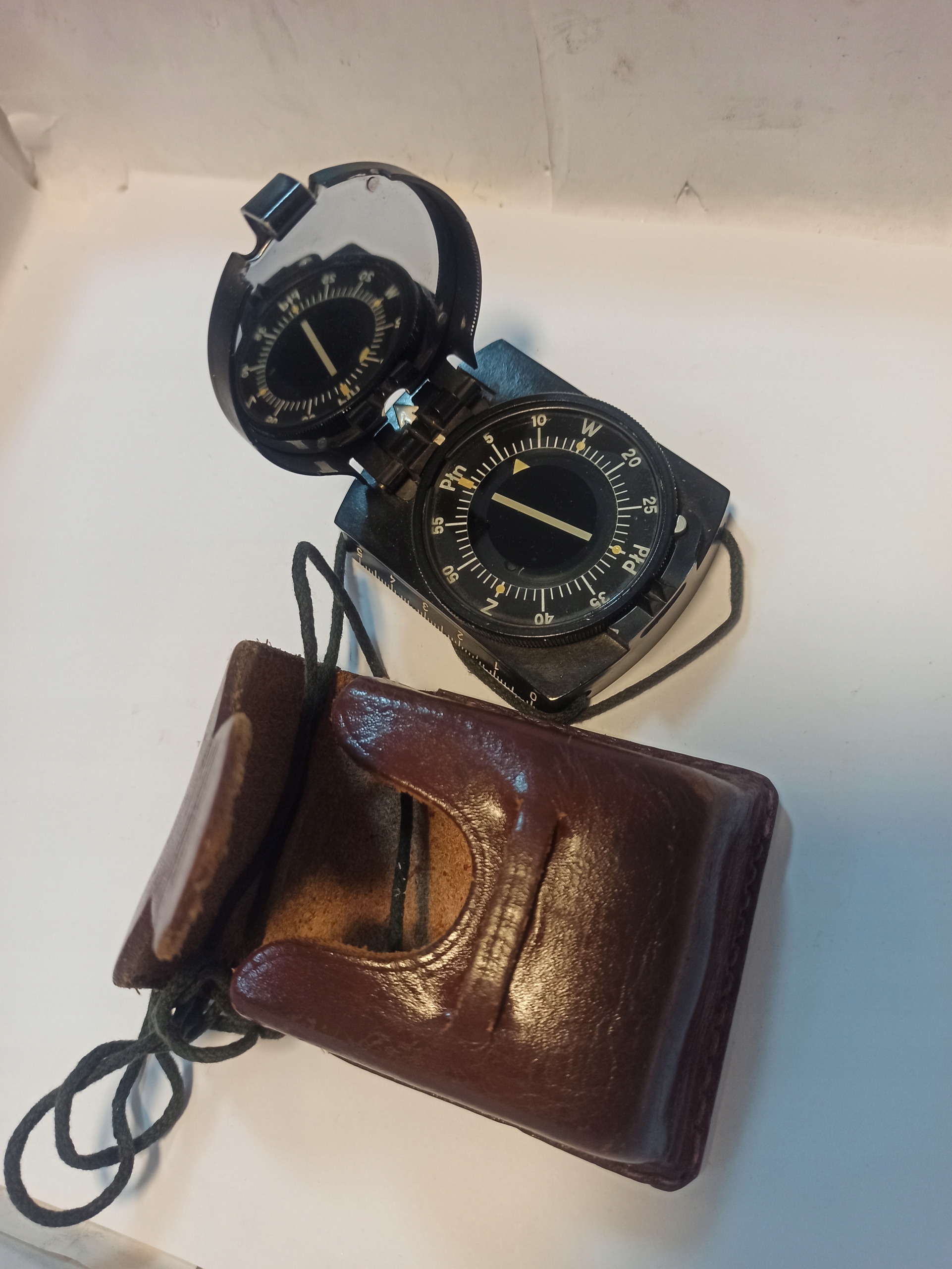 Артилерійський компас в шкіряному футлярі, колекційний компас АК