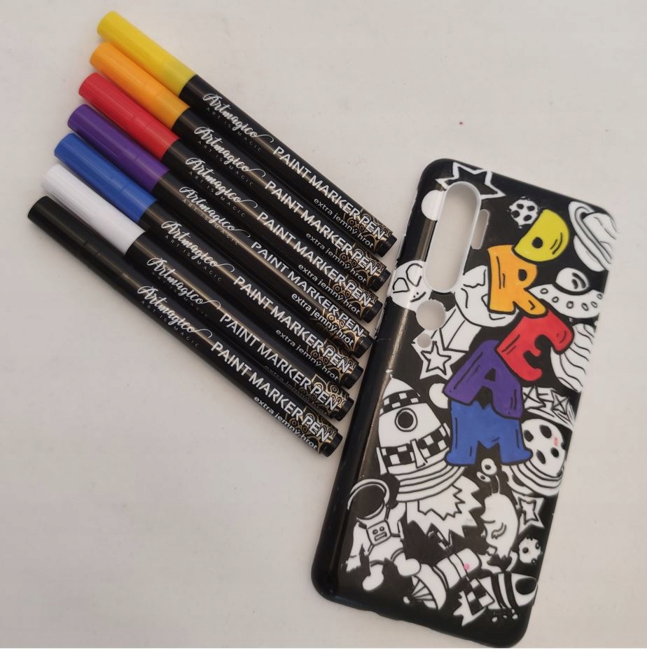акрилові маркери містять інноваційну туш на основі води, яку можна використовувати на всіх типах поверхонь. Виправляє Artmagico забезпечити гладкий потік фарби, високе покриття та яскраві та послідовні кольори. У корпусі Plest -Tip Pen ви знайдете акрилову фарбу з сполучною, поєднання якої закріплюється кулею, яка забезпечить відповідну послідовність під час честі.