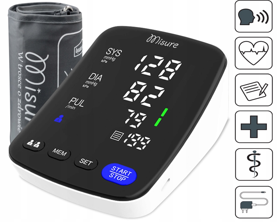 ❤ з функцією виявлення гіпертензії та симптомів аритмії з великим кольоровим світлодіодним дисплеєм та голосовою функцією в польській мові.
