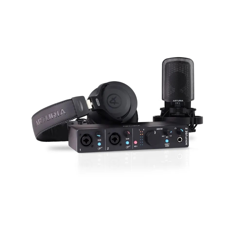 MiniFuse Recording Pack b> — це повний набір для запису, який поєднує в собі інтуїтивно зрозумілий і універсальний аудіо- та MIDI-інтерфейс, конденсаторний мікрофон, навушники та програмне забезпечення преміум-класу, які потрібні сучасним музикантам, продюсерам і творцям контенту. Підключіться, будьте творчими та насолоджуйтесь музикою!