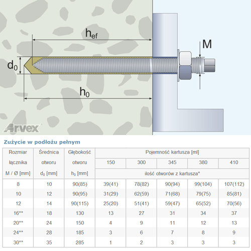 Момент якоря ARVEX CPS 300 мл - це хімічний продукт, заснований на поліестерній смолі, призначений для прив’язки різьбових стрижнів у середньому діапазоні навантаження як у внутрішній, так і у зовнішній конструкції.