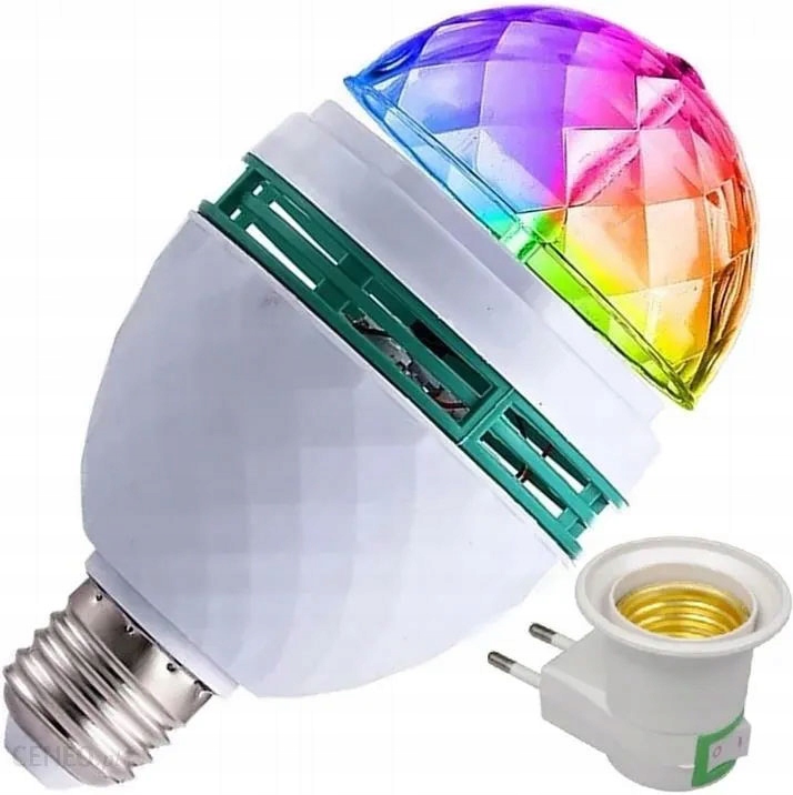 ŻARÓWKA DISCO OBROTOWA KULA DYSKOTEKOWA PROJEKTOR LED RGB E27 + Adapter