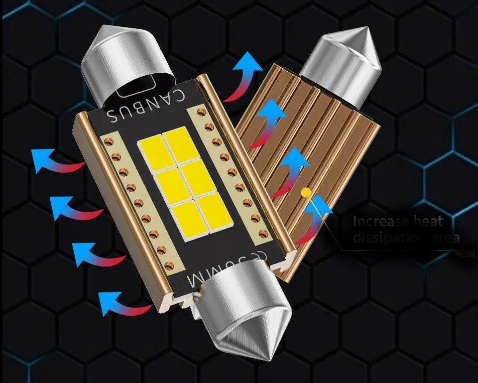 З низьким споживанням струму лише 0,25 A, C5W 39 мм SJ-3020EMCє не тільки економічний вибір, але й безпечний для акумулятора вашого автомобіля. Крім того, його спеціально розроблений радіатор гарантує ефективне регулювання температури, що означає, що лампа залишається холодною та не сприяє перегріву салону автомобіля.