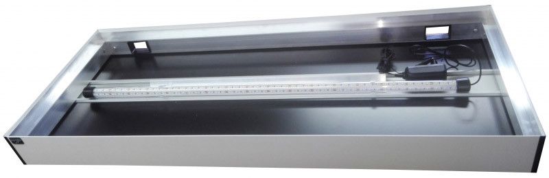 Загальна висота кришки становить 87 мм, з яких 32 мм перекриваються. акваріум. Безсумнівною перевагою алюмінієвих кришок є довговічність, різноманітність кольорів, а також їх використання для резервуарів незвичайних і вище середніх розмірів.
