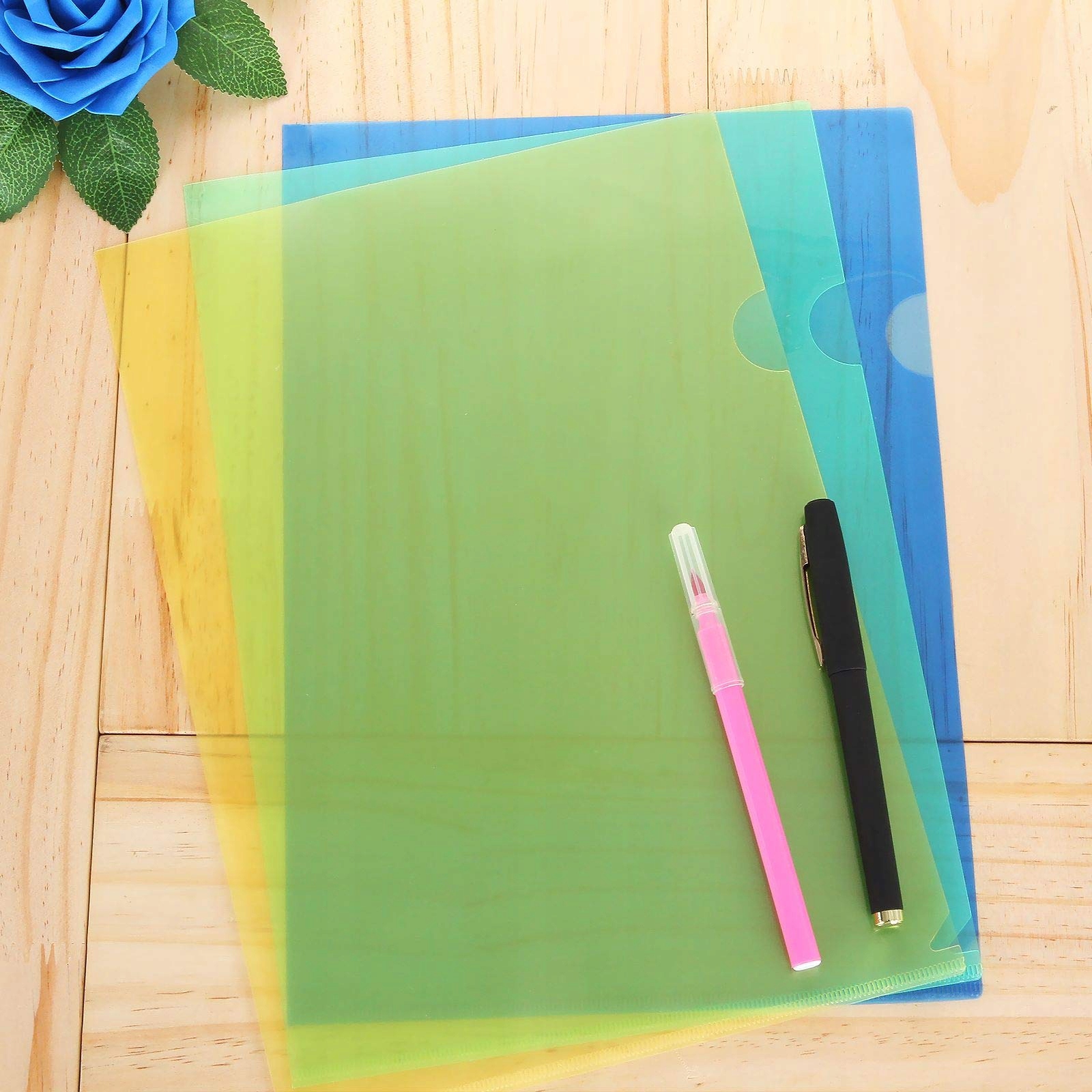 ASelected Набір із 60 предметів формату А4. Кольорові пакети з кольоровими кутами, пластикові сорочки 31 x 22 см, червоні, зелені, сині, жовті, прозорі
