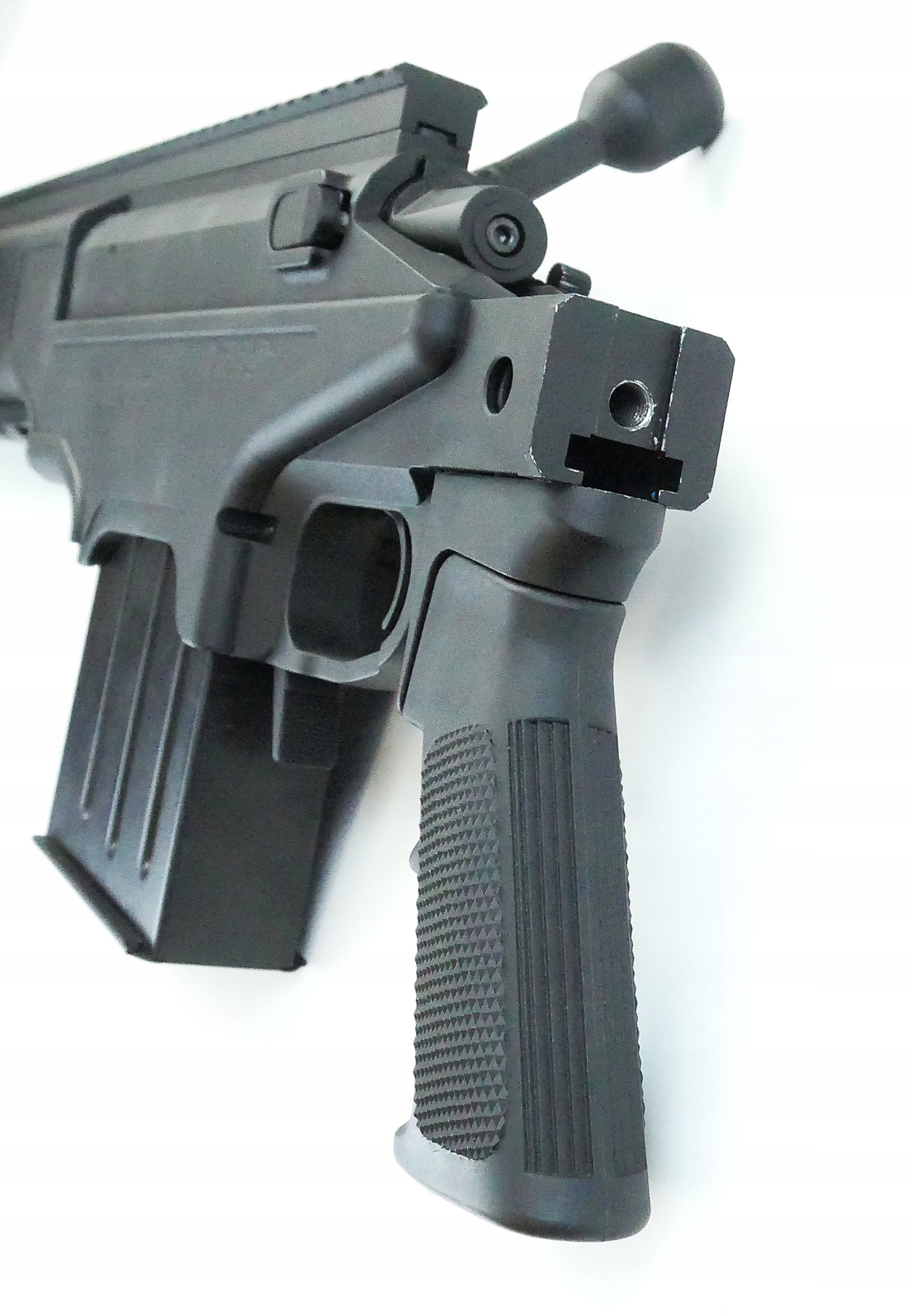 Повністю ліцензована копія снайперської гвинтівки ASW338LM™ була створена з увагою до найдрібніших деталей. Корпус виготовлений з ударостійкого алюмінію, він дуже добре виготовлений і підігнаний. Корпус у поєднанні з рейками R.I.S, виготовленими з ЧПК, і передньою рукояткою з вуглецевого волокна створюють ергономічну копію. Копія має автентичне маркування, і оскільки вона була розроблена на основі оригінальних 3D-проектів Ahsbury - виробника оригінальної гвинтівки з бойовими патронами, вона ідеально відтворена. Кожна гвинтівка також має індивідуальний серійний номер.