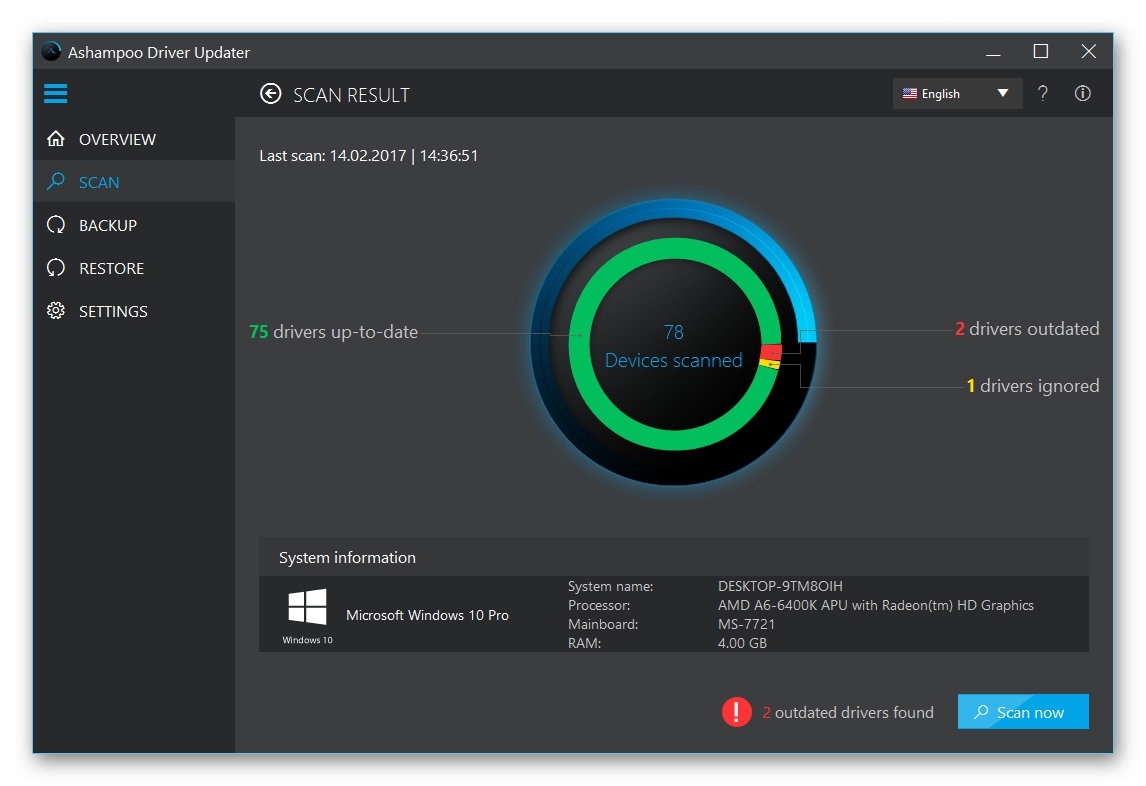 Завдяки програмі оновлення драйверів Ashampoo вам не потрібно натискати різні параметри меню. Добре продуманий інтерфейс програми виконує свої завдання без непотрібних простоїв. Аналізує апаратне забезпечення та драйвери, порівнює у гігантській базі даних і - замінює старі драйвери їх останніми версіями.