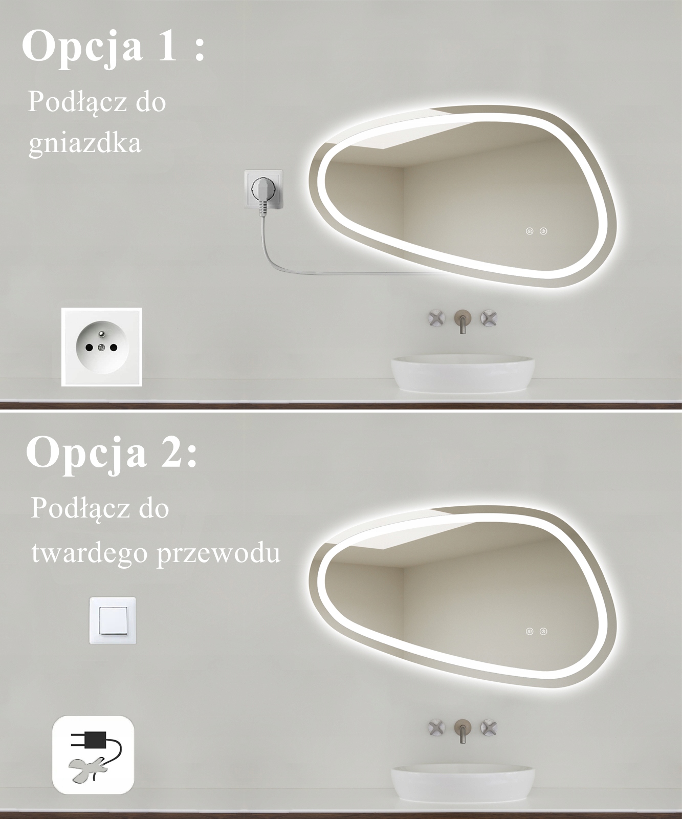 ✅ Два варіанти ввімкнення дзеркала - через зовнішній вимикач (як у випадку з лампами) або сенсорну кнопку на дзеркалі