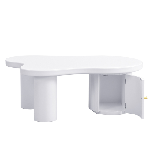 Цей сучасний, асиметричний журнальний столик - це більше, ніж просто предмет меблів; Це стильне доповнення до будь -якої вітальні чи офісу. Він відходить від класичної прямокутної форми завдяки інноваційному дизайну, який приносить художню енергію в будь -яку кімнату. Його вигнута силует, контрастна циліндрична основа та багаті текстури сторін роблять його центром будь -якого стилю, як сучасного, скандинавського та мінімалістичного. Ключовим елементом є інтегрований простір для зберігання із закругленими дверима, ідеально підходить для зберігання пілотів, книг чи інших дрібниць повсякденного використання.