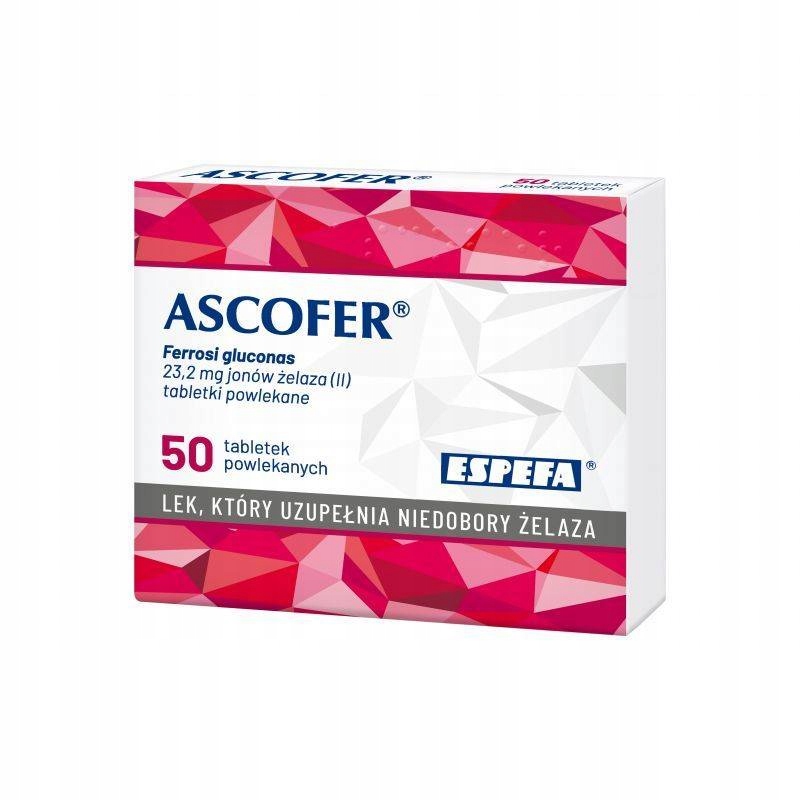 Таблетки Аскофер, вкриті оболонкою, містять 200 мг заліза(II) глюконату, який відповідає 23,2 мг іонів заліза(II) і використовується для поповнення дефіциту заліза в організмі. Дефіцит заліза може порушити виробництво еритроцитів і тканинне дихання через зменшення кількості білків, які переносять і споживають кисень (гемоглобін і міоглобін).