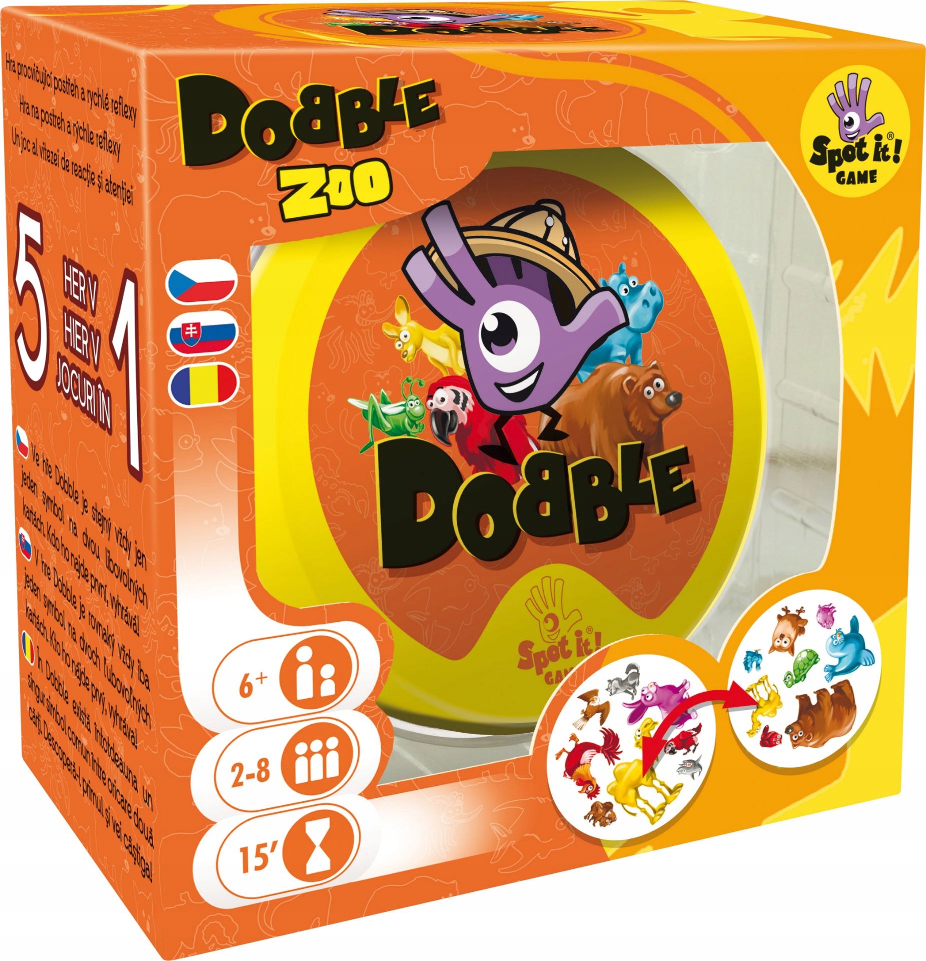 Пострешеховий бестселер se vrací s postavkama and zvířátek symbols from the ZOO! Mate rádi zvířátka všech barev? Подивіться на них і поверніться до роботи з Dobble! Hra je zaměřená na rychlost, postřeh a reflexy! Hráči de hledají два символи stejné на картках у різних версіях гри (v pravidlech them popsáno celkem 5 her). Чудові картки та універсальне рішення всього за кілька секунд. Plechová krabička заручить безпечний карет, і ви можете організувати це для себе. Vyzkoušejte i Vy postřehový fenomén Dobble a jistě будете prekvapeni, as well as a targeted hra může byt zabavná and zároveň learn! Гра зіскала рейтинги Грачка року в категорії настільні ігри! Obsah balení: 55 karet in plechové krabičce 1 česká, slovenská a rumunská pravidla
