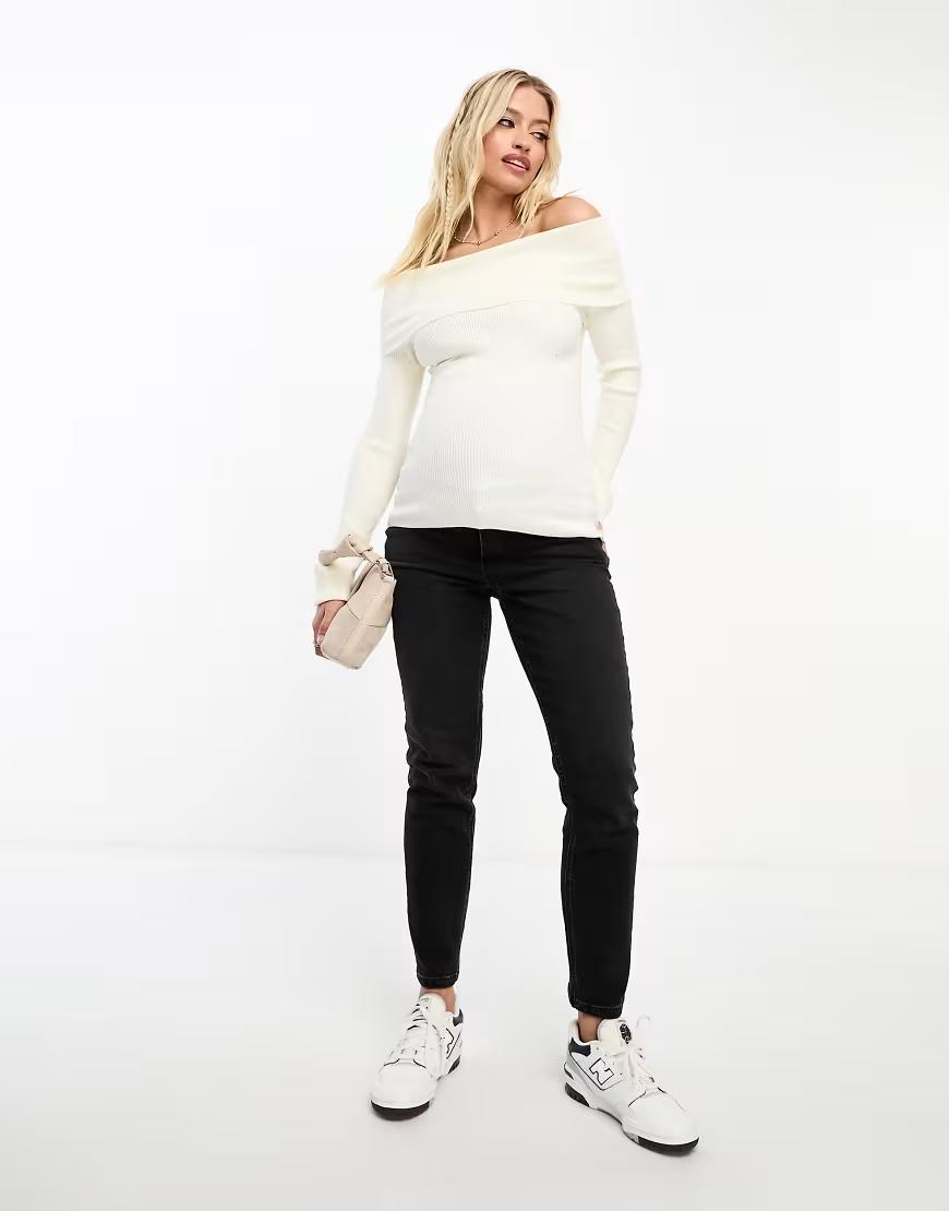 ASOS DESIGN MATERNITY CREAM RIBBED OFF SHOULDER TOP L