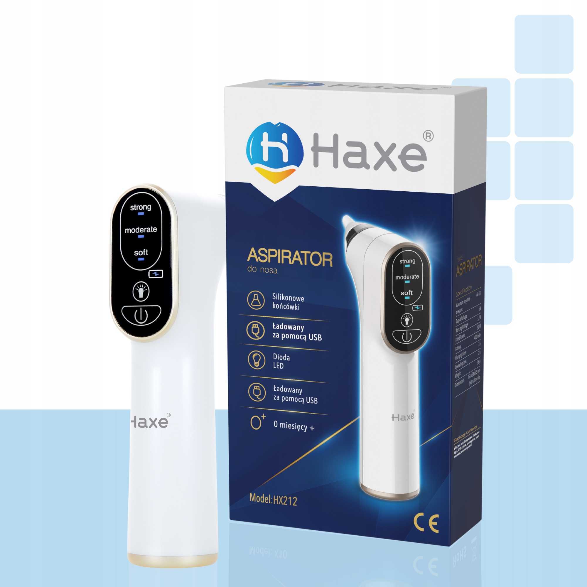 Електричний аспіратор використовується для очищення носика найменших дітей. Продукт безпечний, тому його можна використовувати навіть з перших днів життя дитини. У ньому є спеціальні поради, дві для новонароджених і дві для дітей старше 1 року.