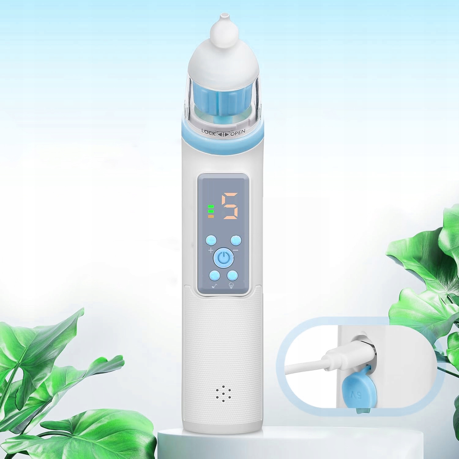 - Дитячий назальний аспіратор забезпечує 5 режимів всмоктування, до 75 KPa, який можна адаптувати до поточної ситуації дитини, щоб ніжно та швидко відсмоктувати слиз із носа. Calabash Head безпечний і ефективний для використання у новонароджених.