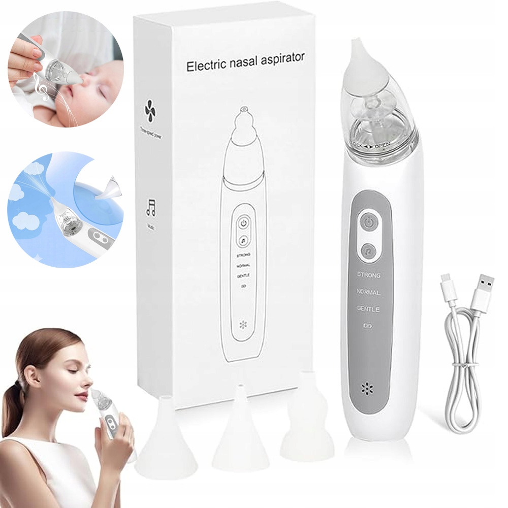 Електричний назальний аспіратор для немовлят - 3 рівні потужності всмоктування та наконечник