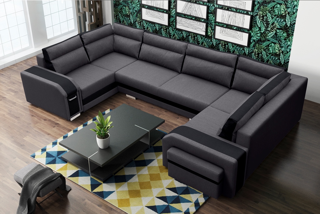 Кутовий диван ASSAN U відрізняється сучасним дизайном і надзвичайним комфортом. Кутовий диван з топових матеріалів. Має висувну штангу та захований збоку пуф. Додатковою перевагою є, безсумнівно, 3 контейнери для постільної білизни і величезна функція сну. Просторий, оригінальний кутовий диван, який ідеально впишеться в будь-який будинок або квартиру.