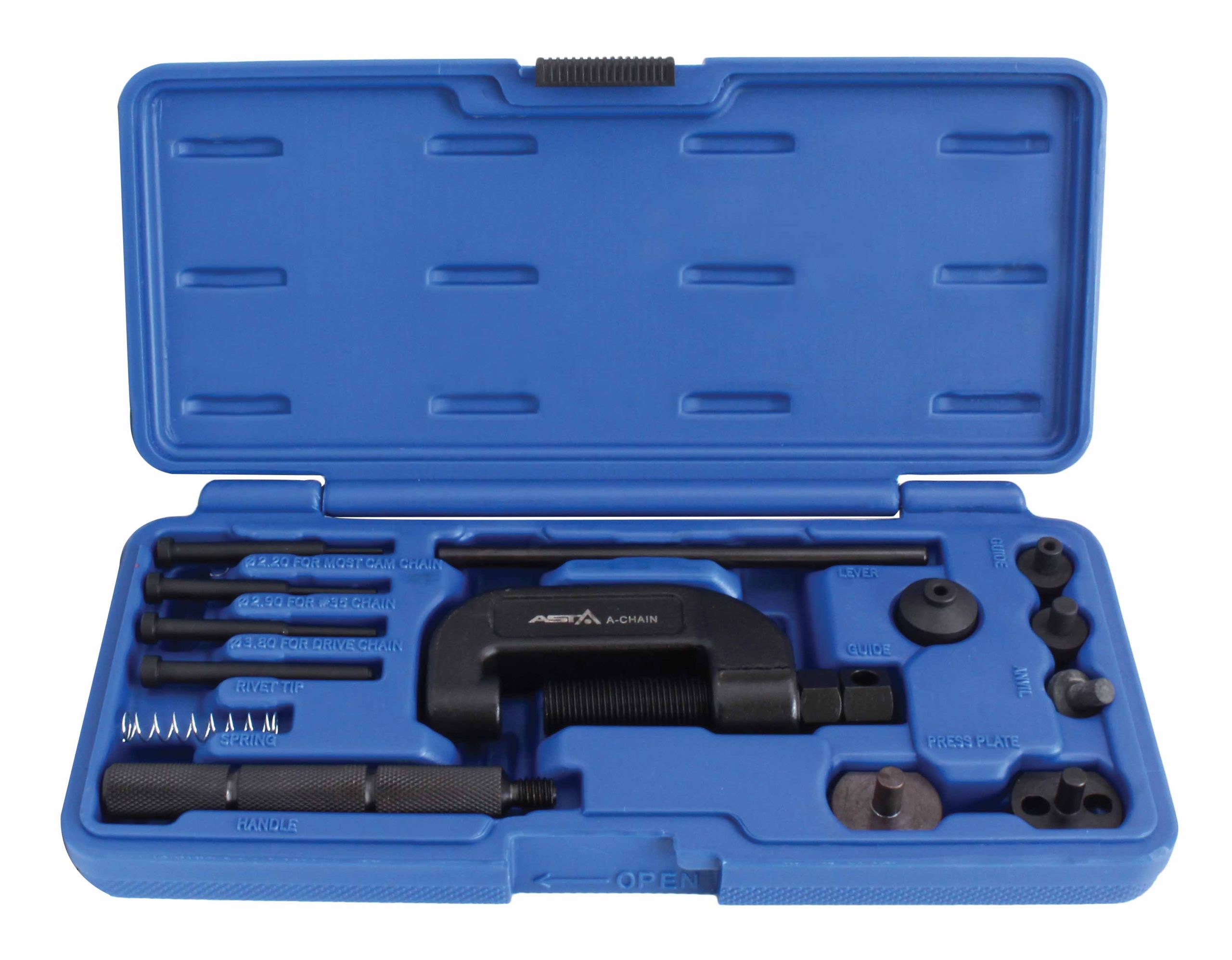 Набір призначений для розкріплення та розклепування приводних ланцюгів у легкових автомобілях, наприклад, Mercedes Benz, BMW та мотоциклах інші машини та пристрої з ланцюговим приводом.