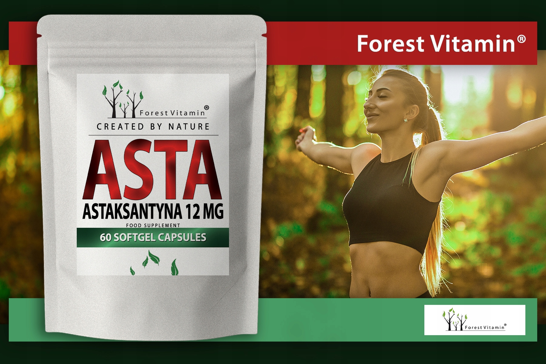 ForestVitamin® Astaxanthin 12 mg - це найвища доза астаксантину в одній капсулі, рекомендована дорослим людям, які піклуються про стан своєї шкіри, очей. і все тіло. Це ідеальний вибір для активних людей, спортсменів, людей, які працюють за комп'ютером або проводять багато часу на сонці, які хочуть підкріпити свій щоденний раціон природним антиоксидантом найвищої якості.