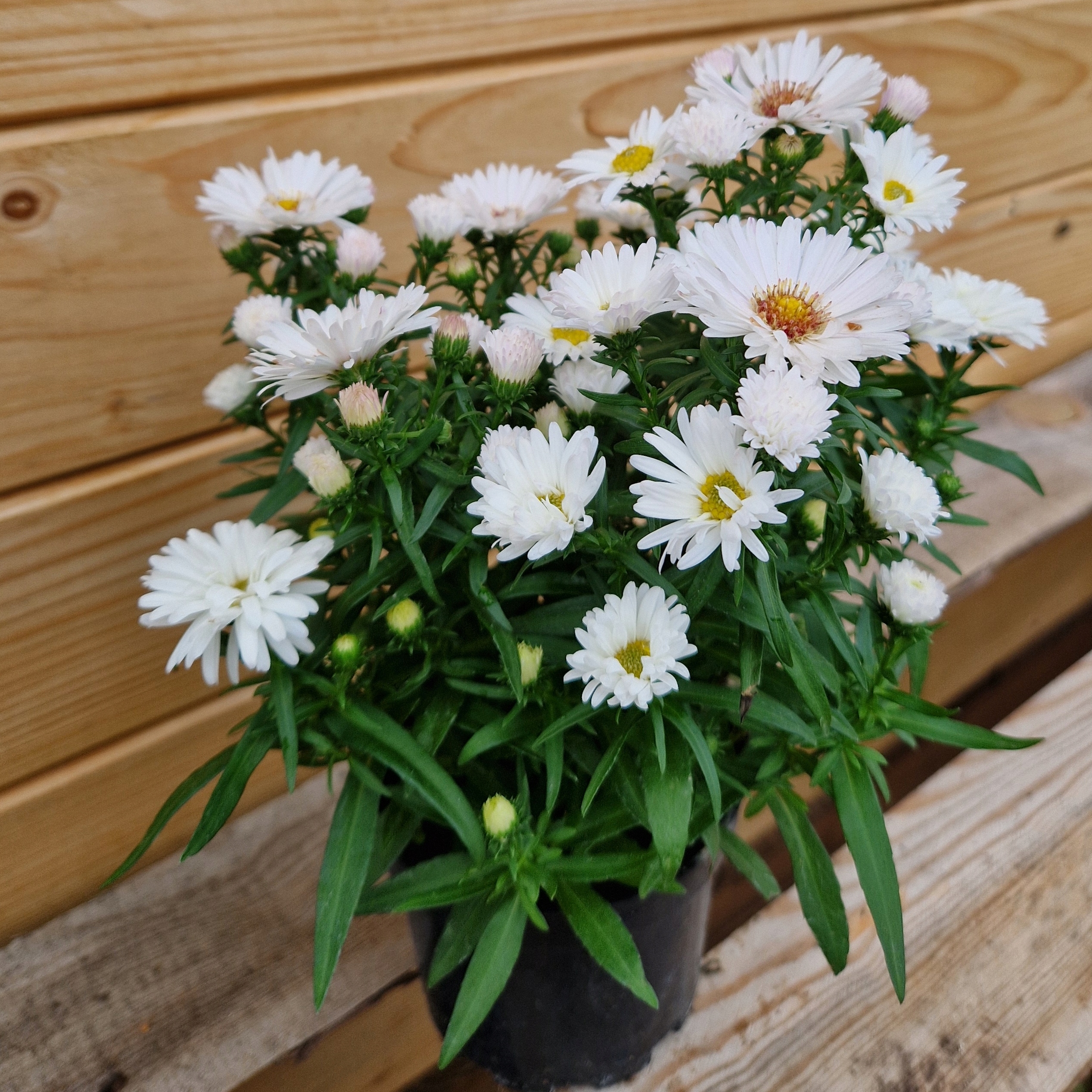 Aster Nowobelgiji Michałek білий жовтий центр у горщику для саду l