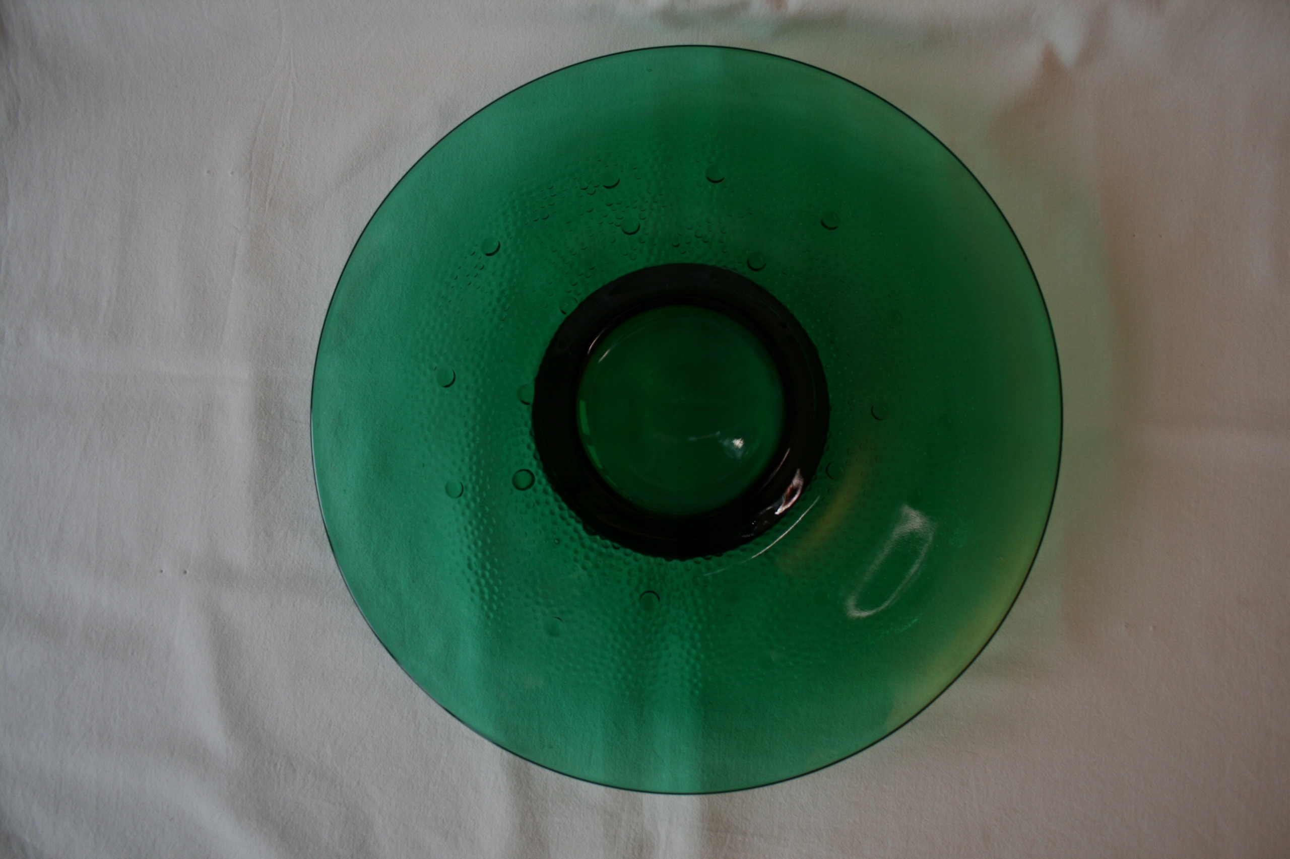Привіт. Предметом аукціону є форма для кексів Asteroid Emerald. Форма для кексів була виготовлена за часів Польської Народної Республіки за дизайном Я.С. Drost Huta Szkła Ząbkowice, колір Зелений (Смарагд), висота 4 см, ширина 33 см, мінімальний скол на нозі від ковзання, невеликі виробничі дефекти, звичайні сліди використання, в цілому в дуже хорошому стані. Вітаю і запрошую на мої аукціони. Аукціони можуть бути завершені достроково.